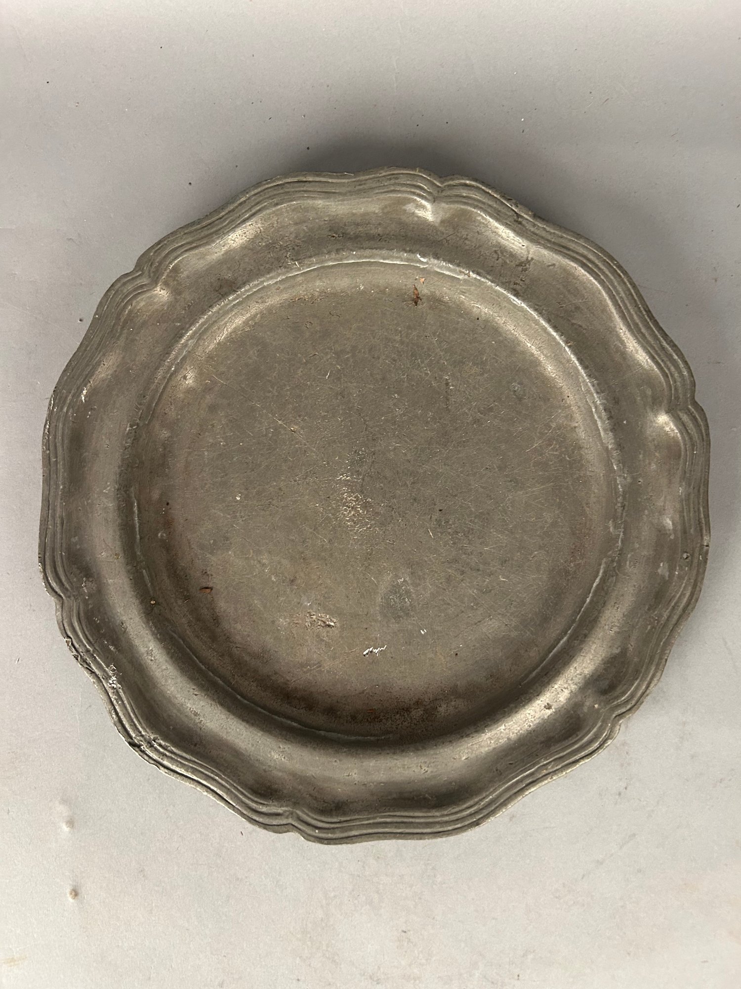 Antique pewter charger w scalloped edge 13"