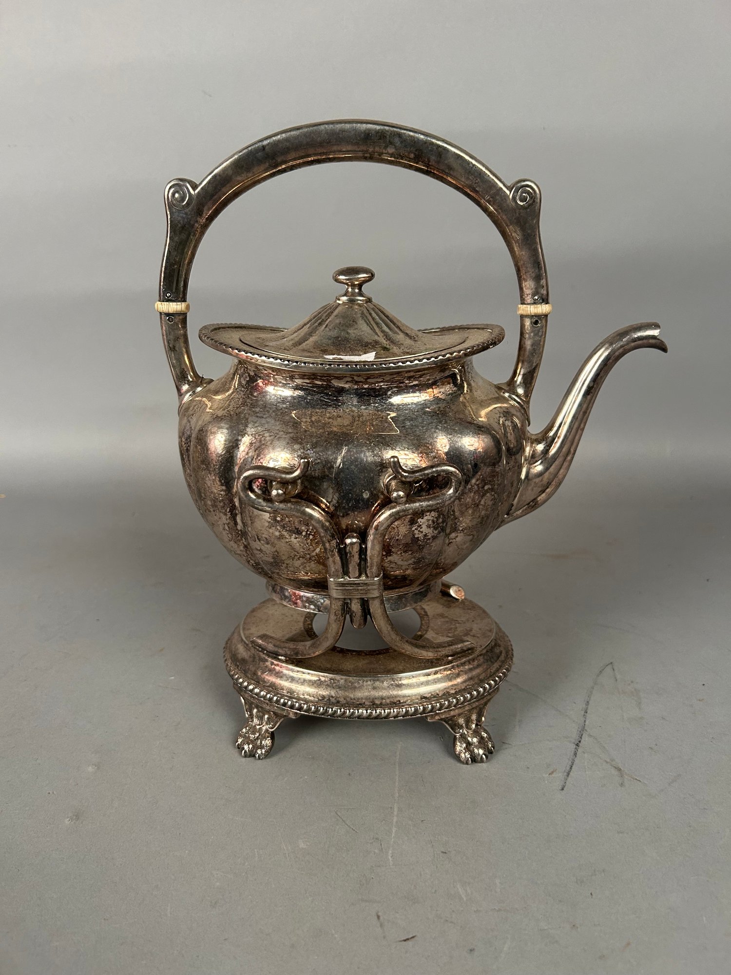 Antique Silverplate teapot on Stand coffee, bone highlights"