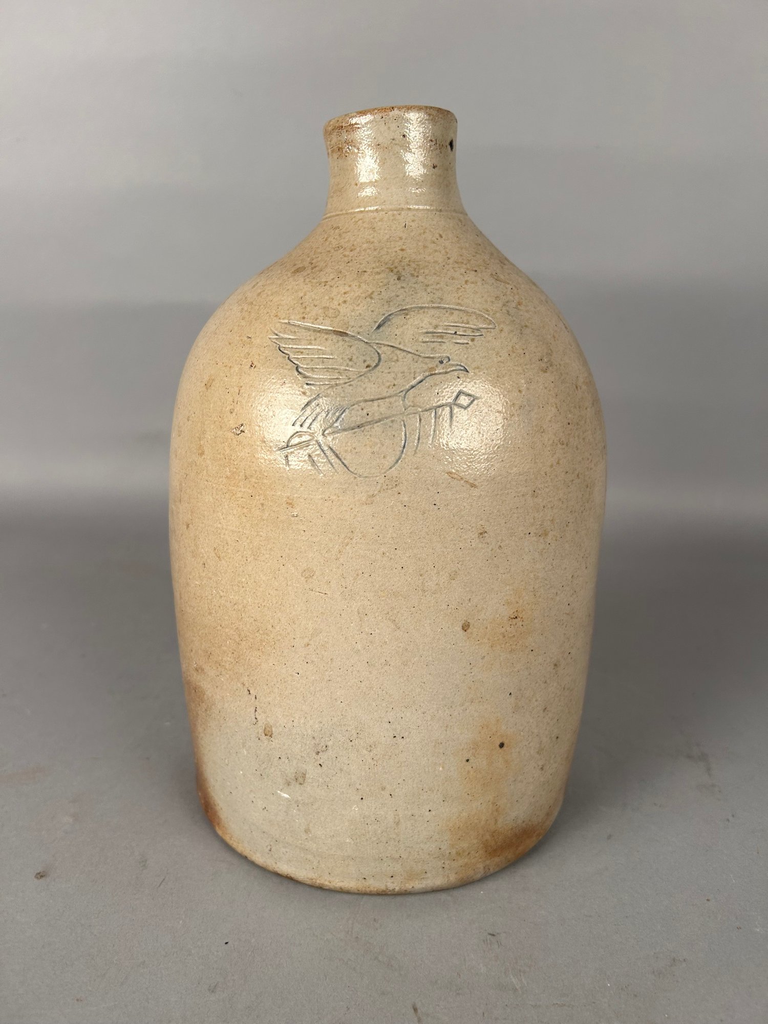Antique Stoneware jug incised eagle w blue highlights