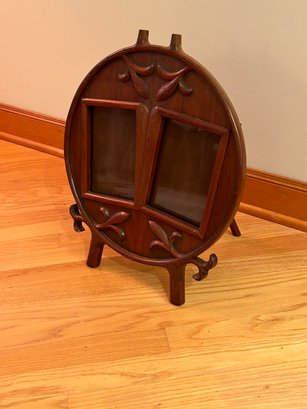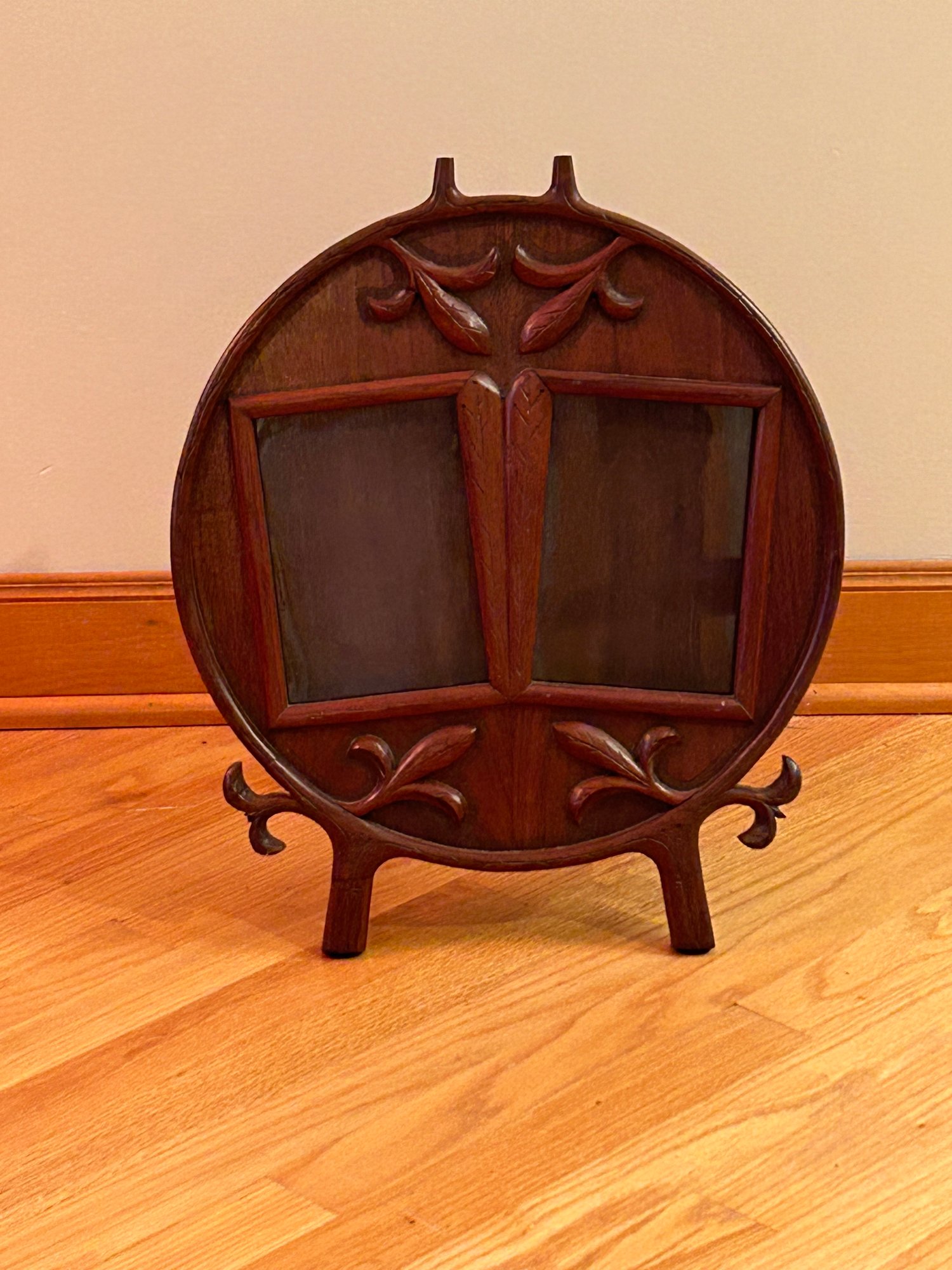 Antique walnut picture frame. Space for two pictures. carved leaf with carved vine around frame. 18x16 inches