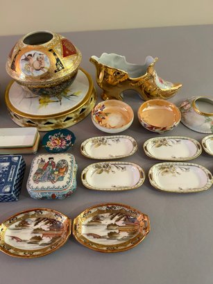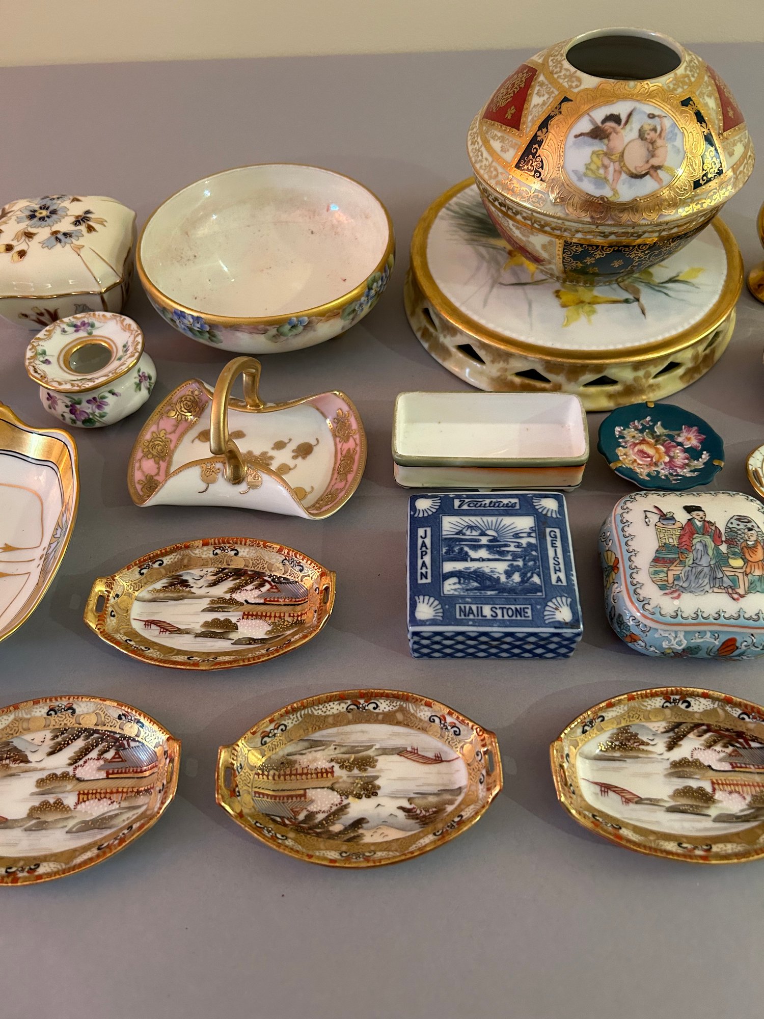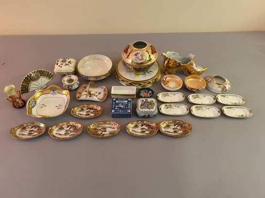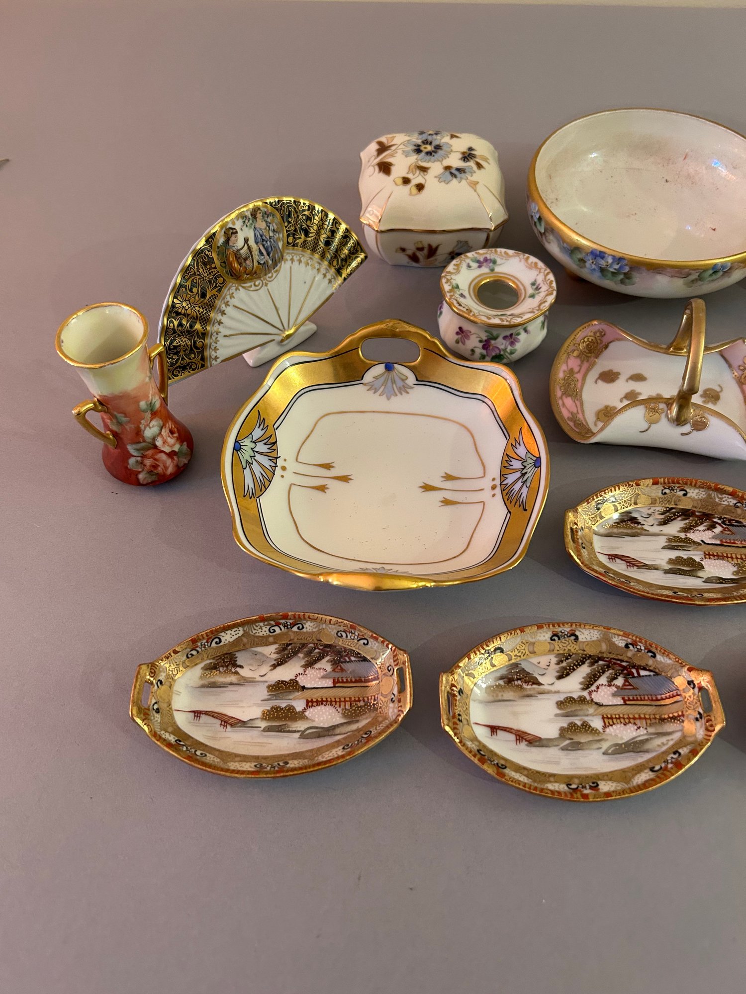 Assortment of small porcelain items including satsuma and Nippon. Largest 4 inches