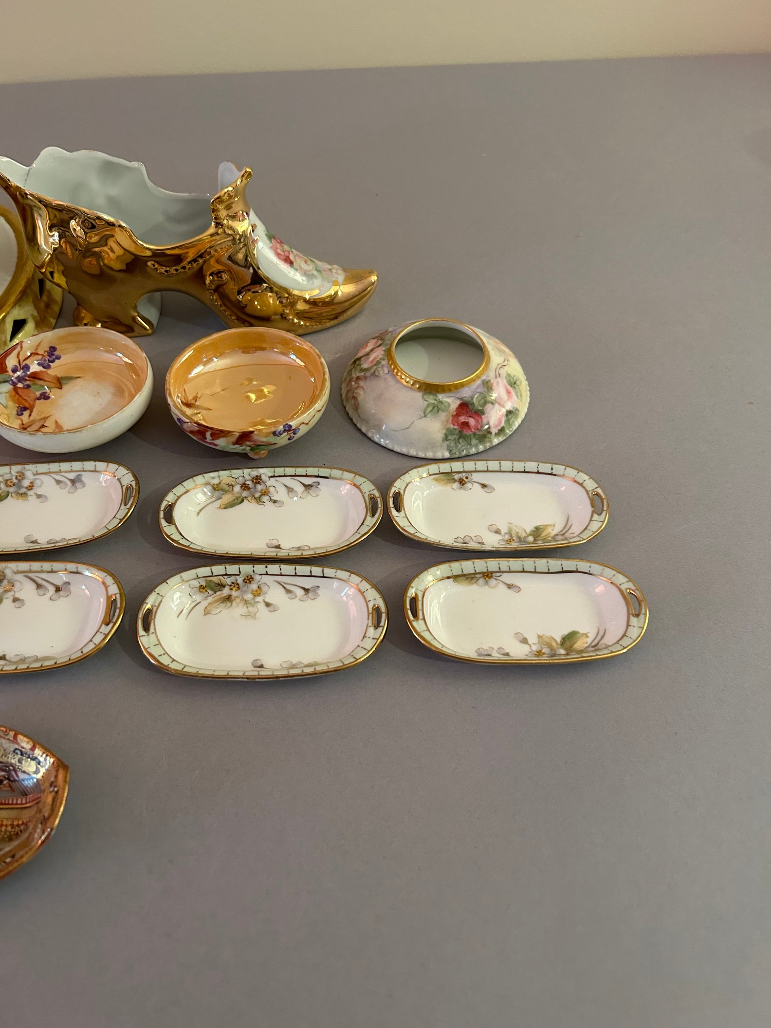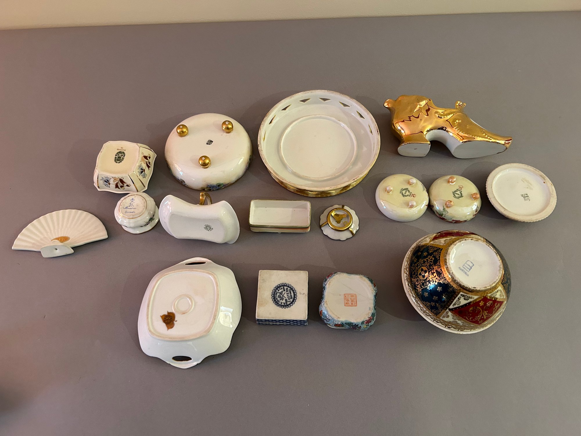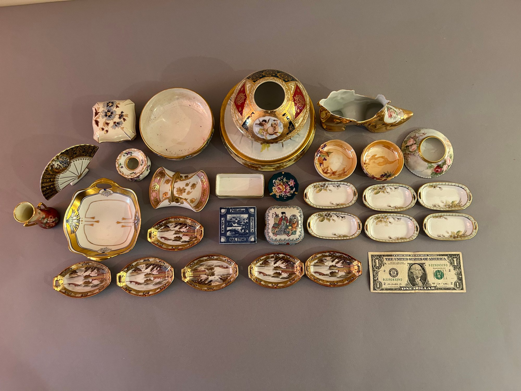 Assortment of small porcelain items including satsuma and Nippon. Largest 4 inches