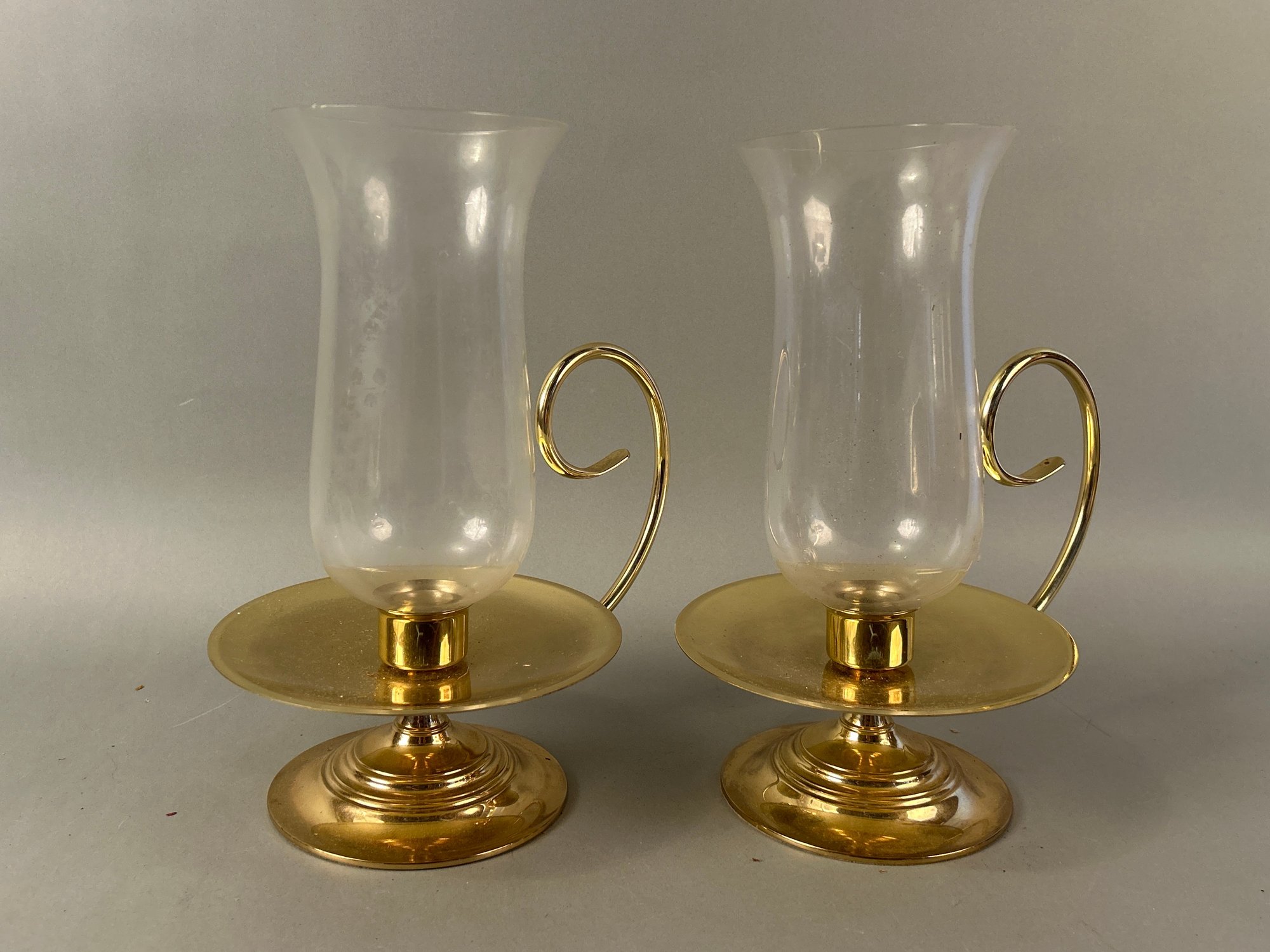 Baldwin Brass Hurricane Candle Holders With hurricane glass shades. 13” tall