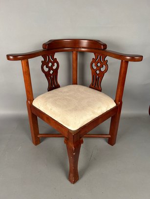 Chippendale style child Chair w pierced back, cabriole legs and upholstered seat