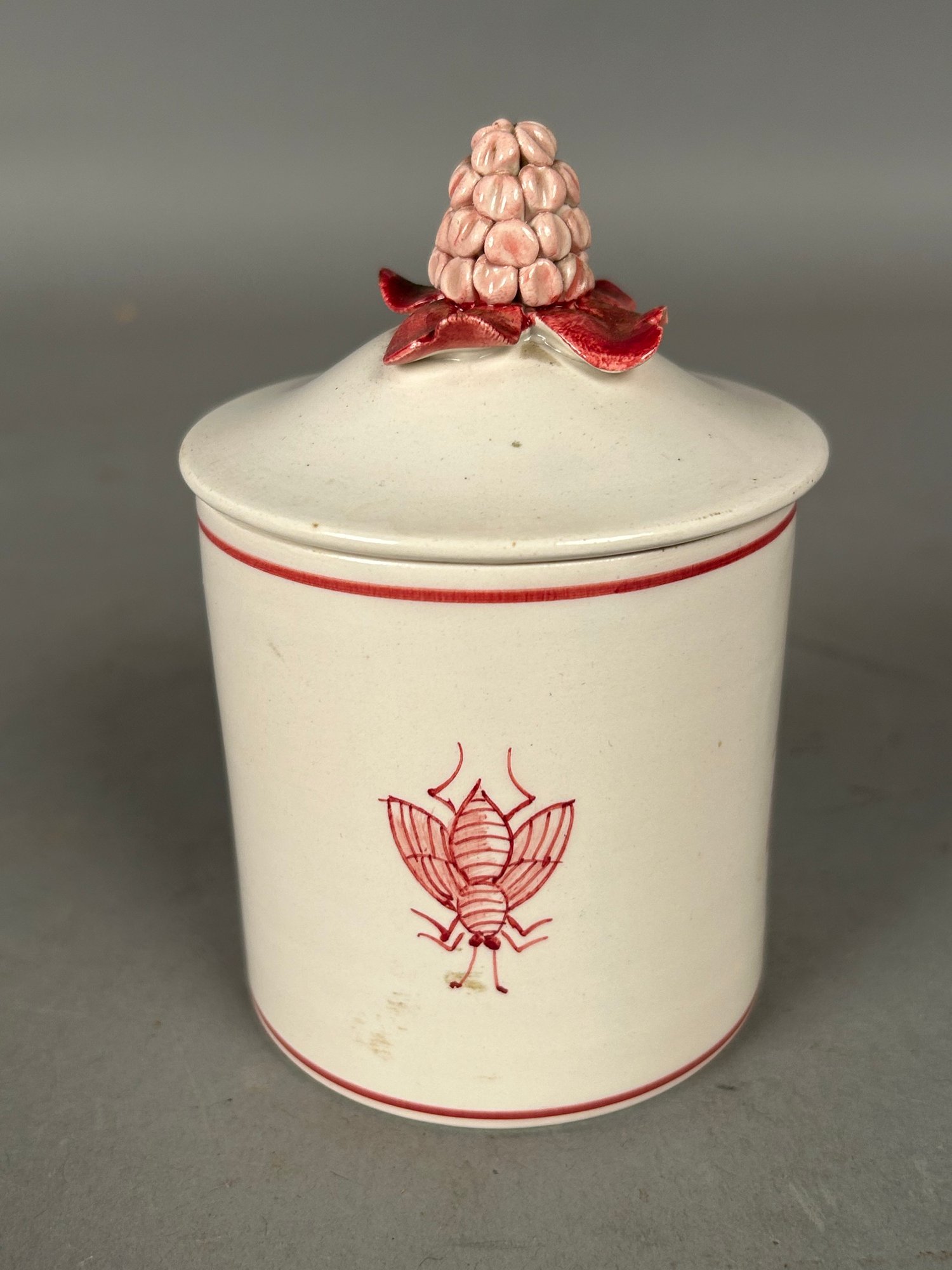 Covered Porcelain Jar W Bee Decoration, flower finial