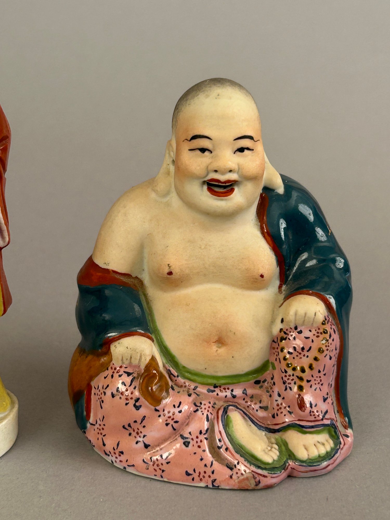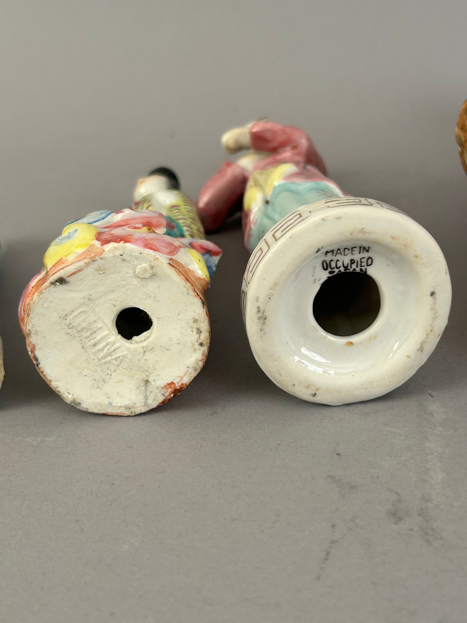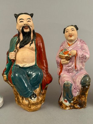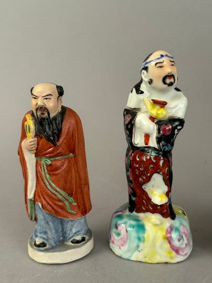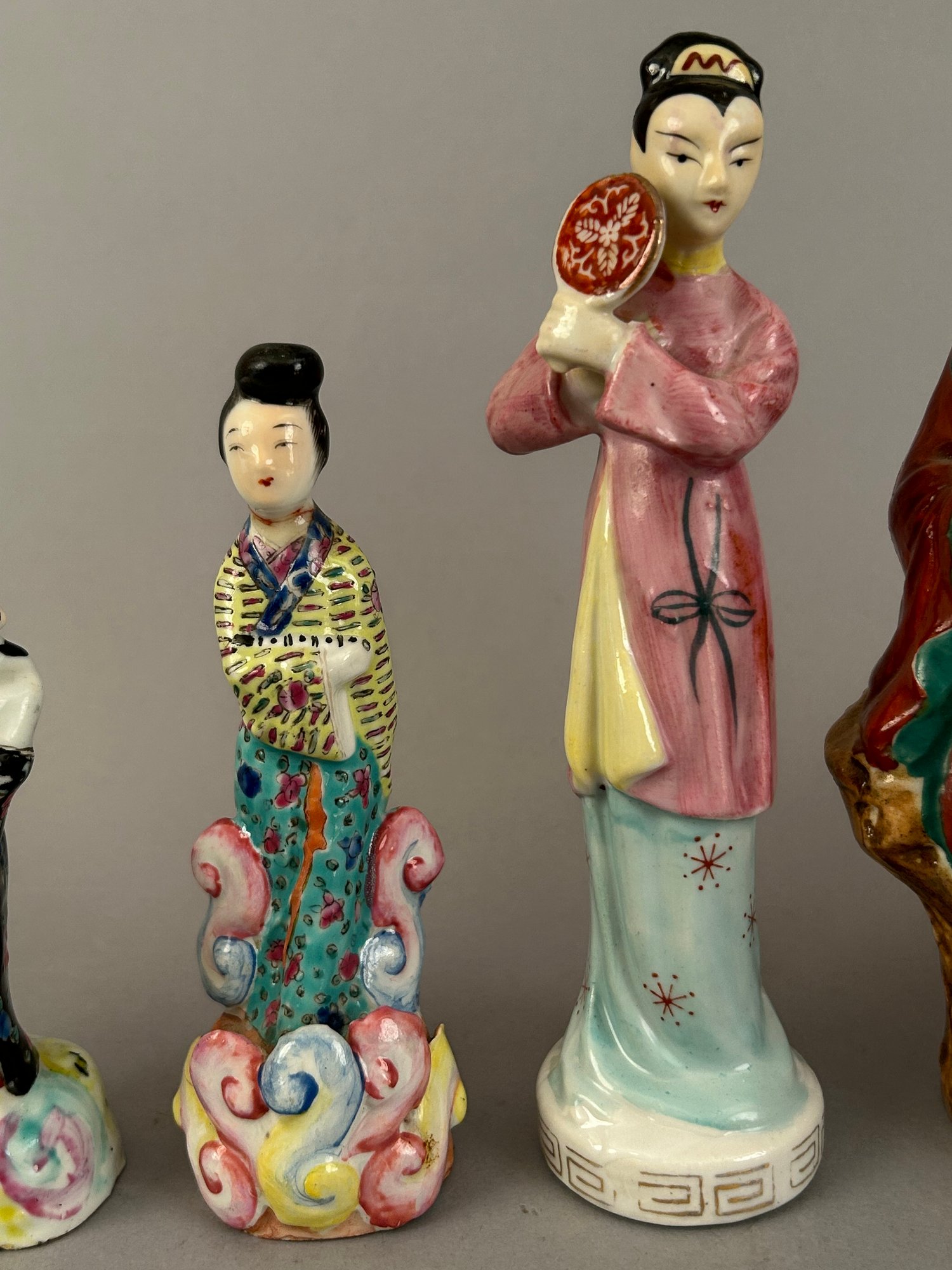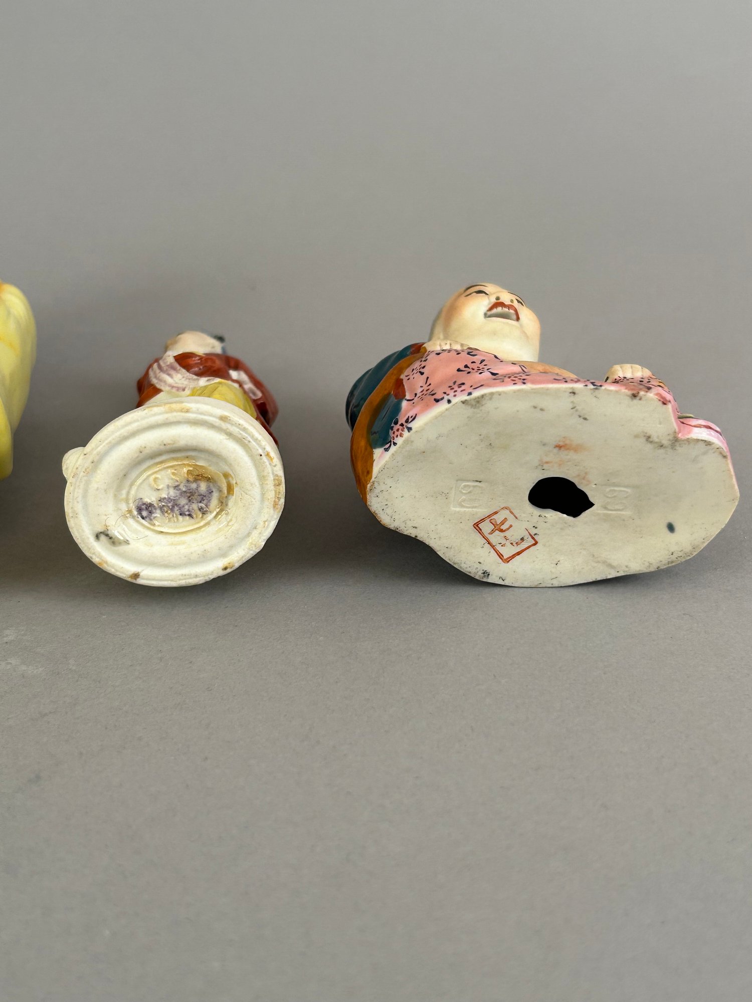 Nine Chinese figurines of assorted shapes and sizes. Some marked on the bottom.