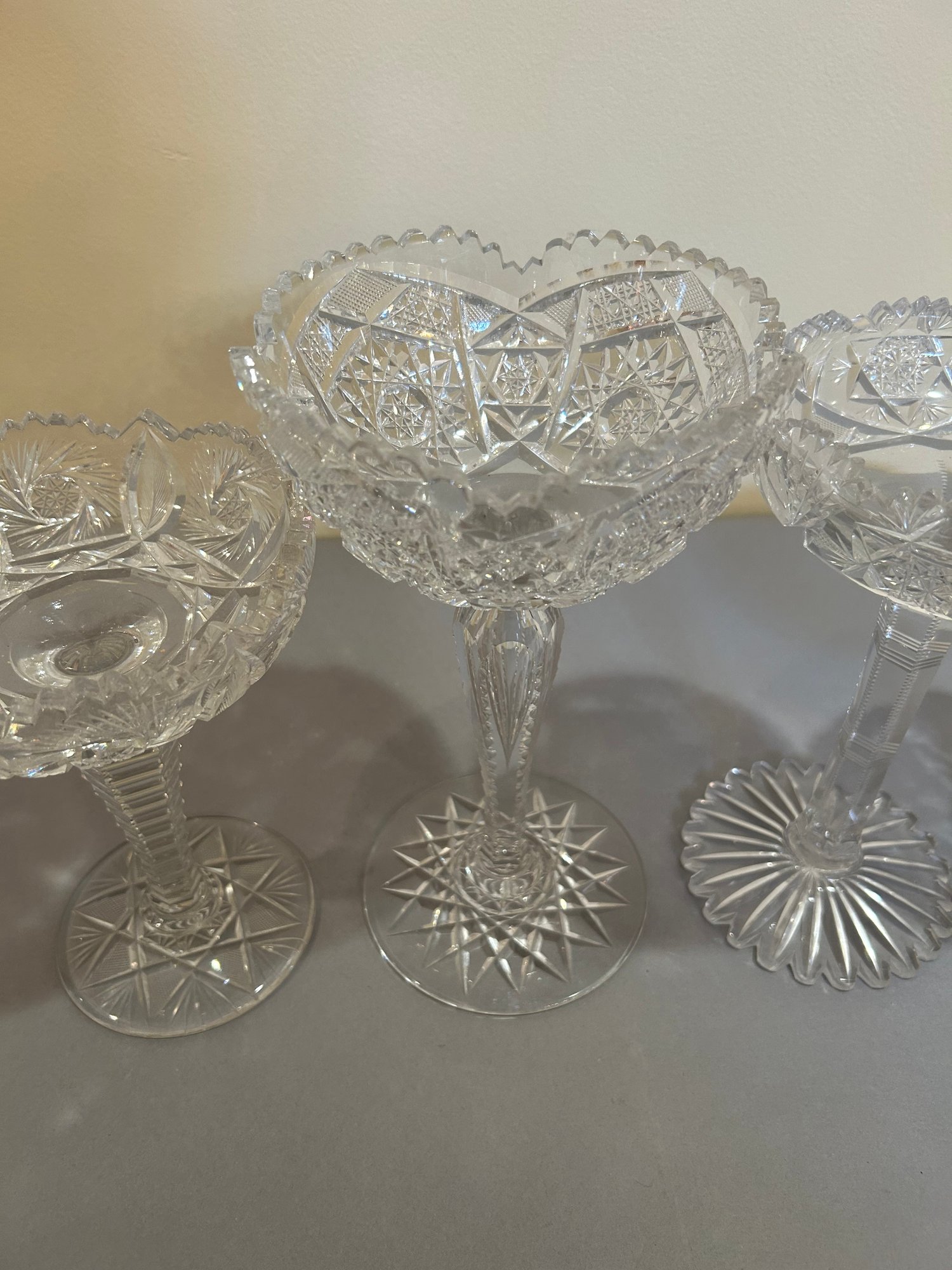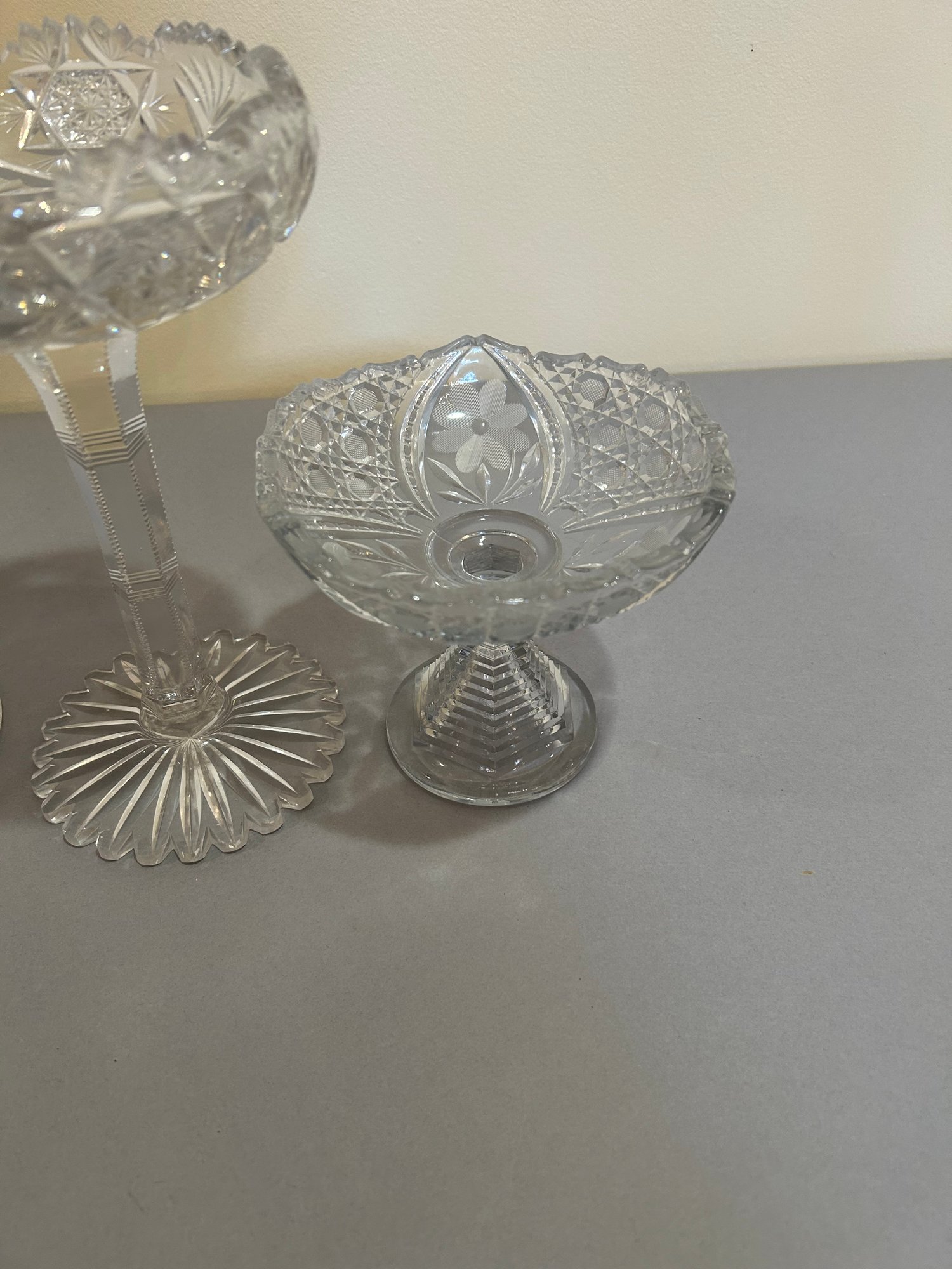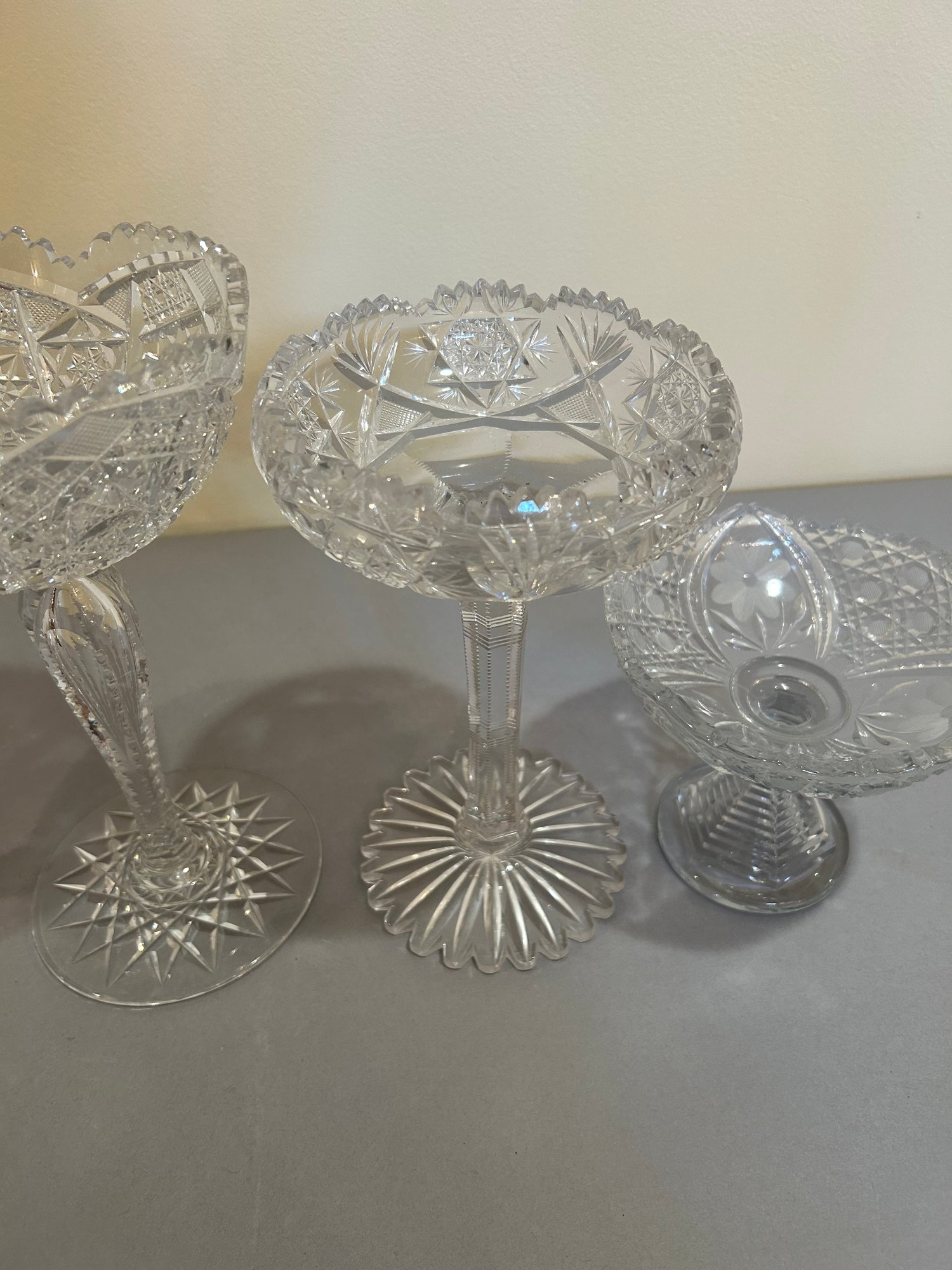 Four Cut Crystal Compotes. Tallest one 10 inches.