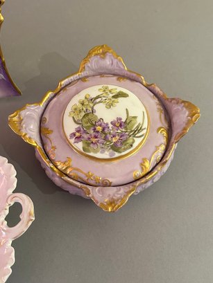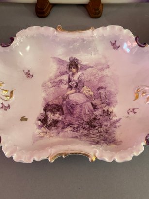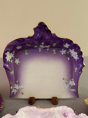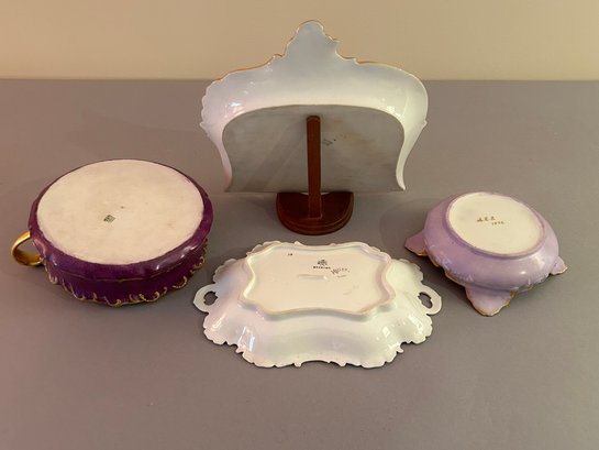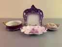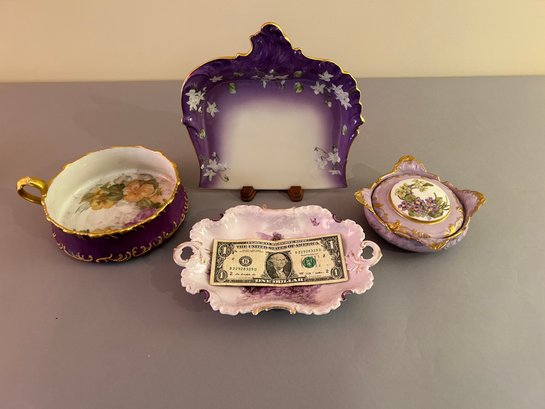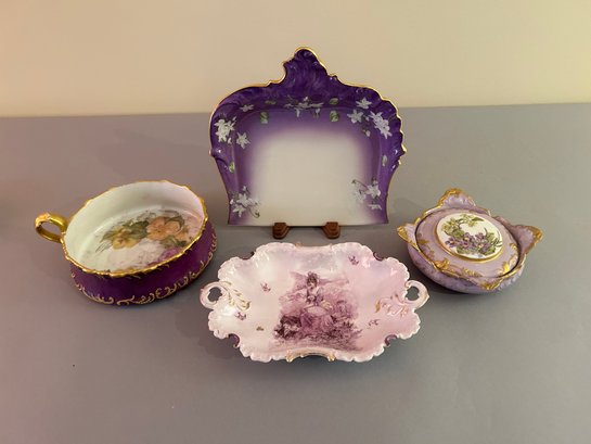 Four Pieces Of Purple Porcelain Including Limoges. Largest 9 inches