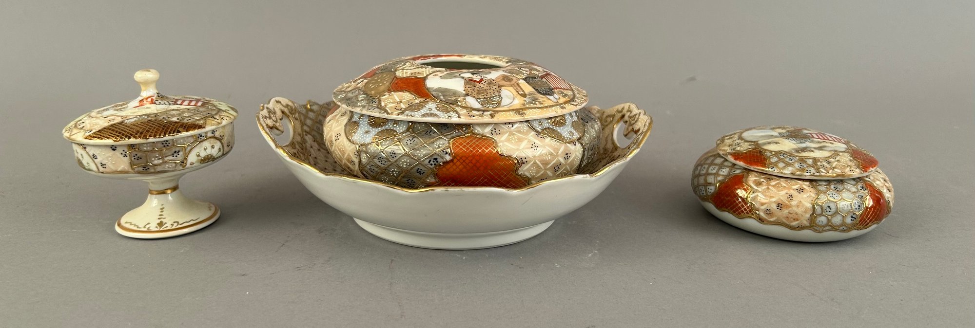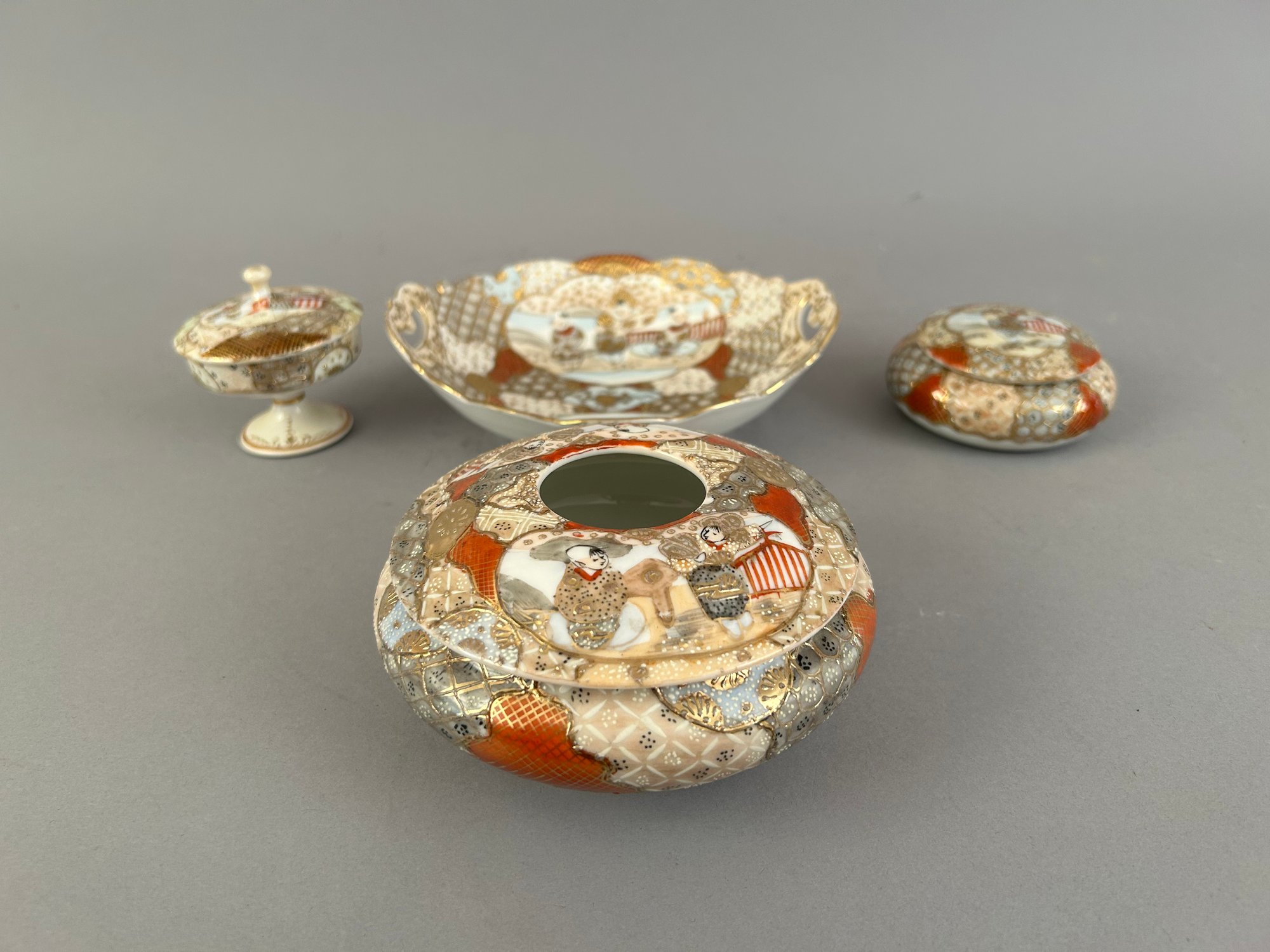 Four pieces Satsuma including covered jars and a bowl.