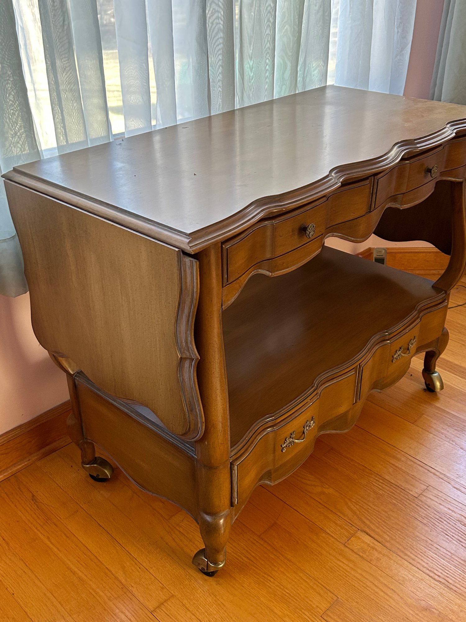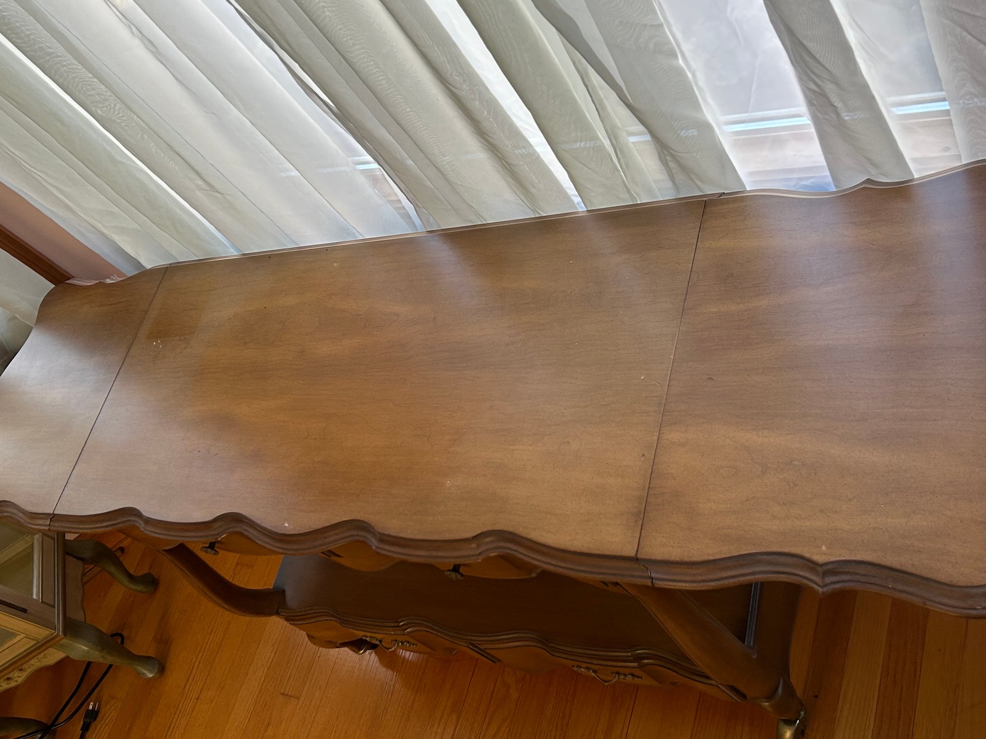 Dropleaf sideboard, white furniture company, French provincial style 41“ x 20“ x 31“ 68 inches open