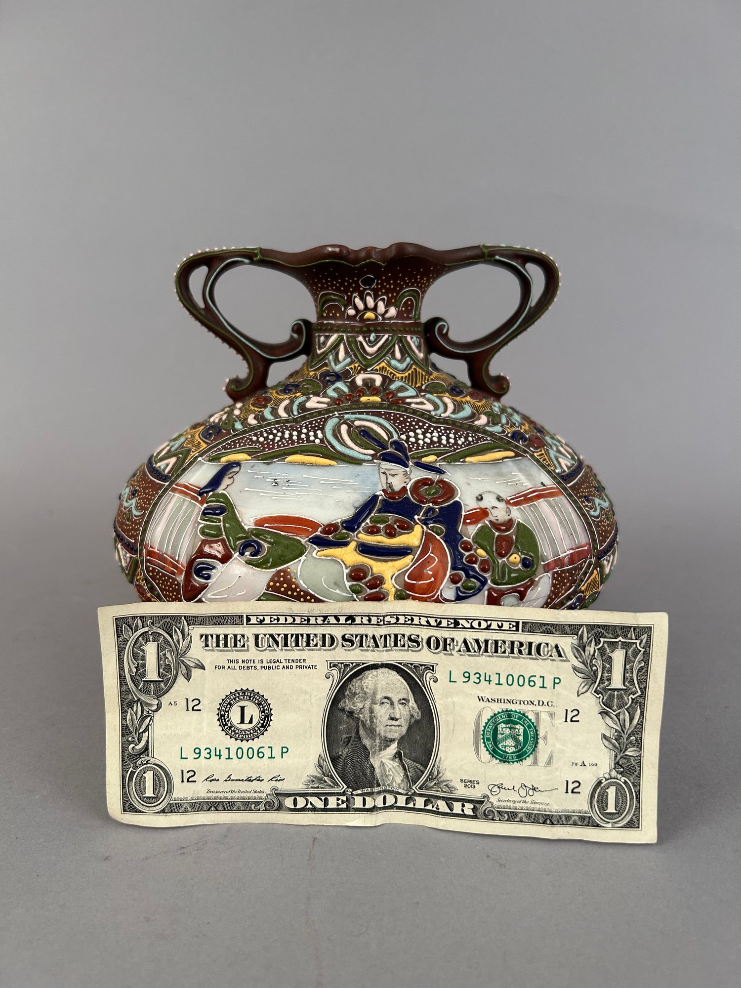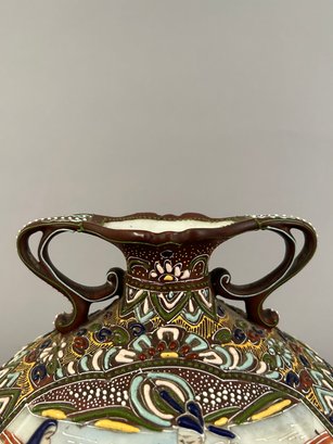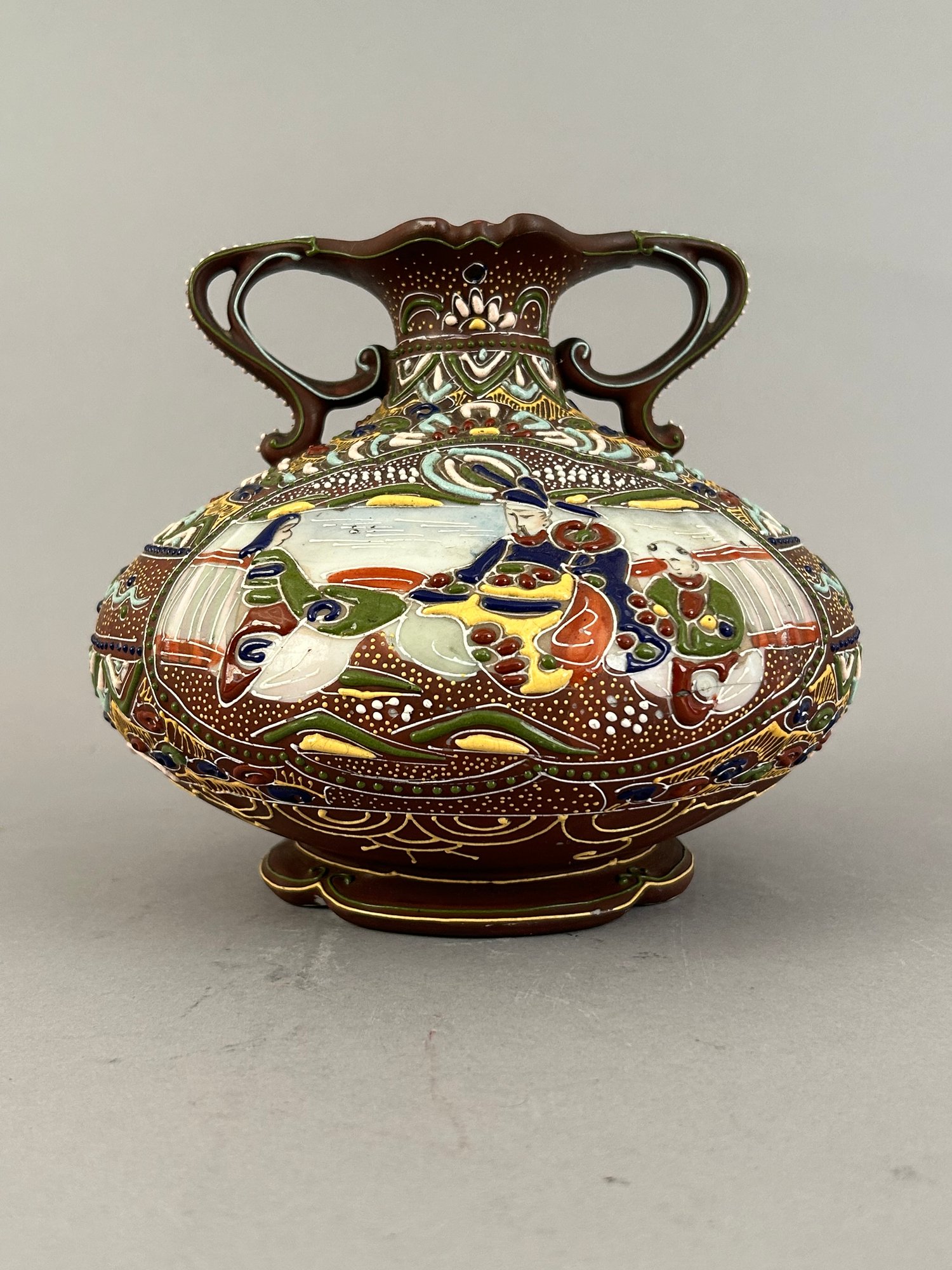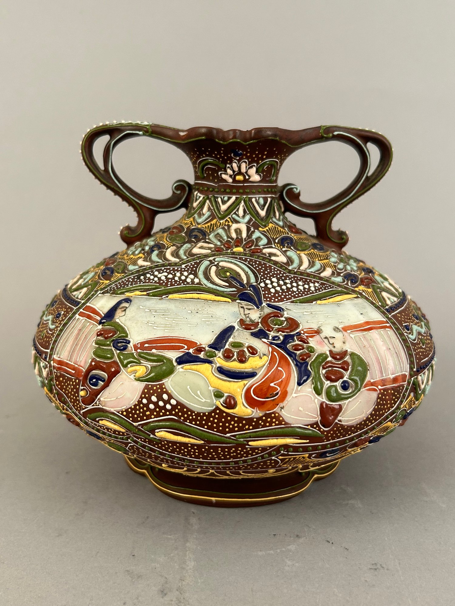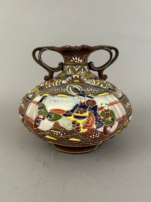 Japanese Satsuma Moriage two handled vase