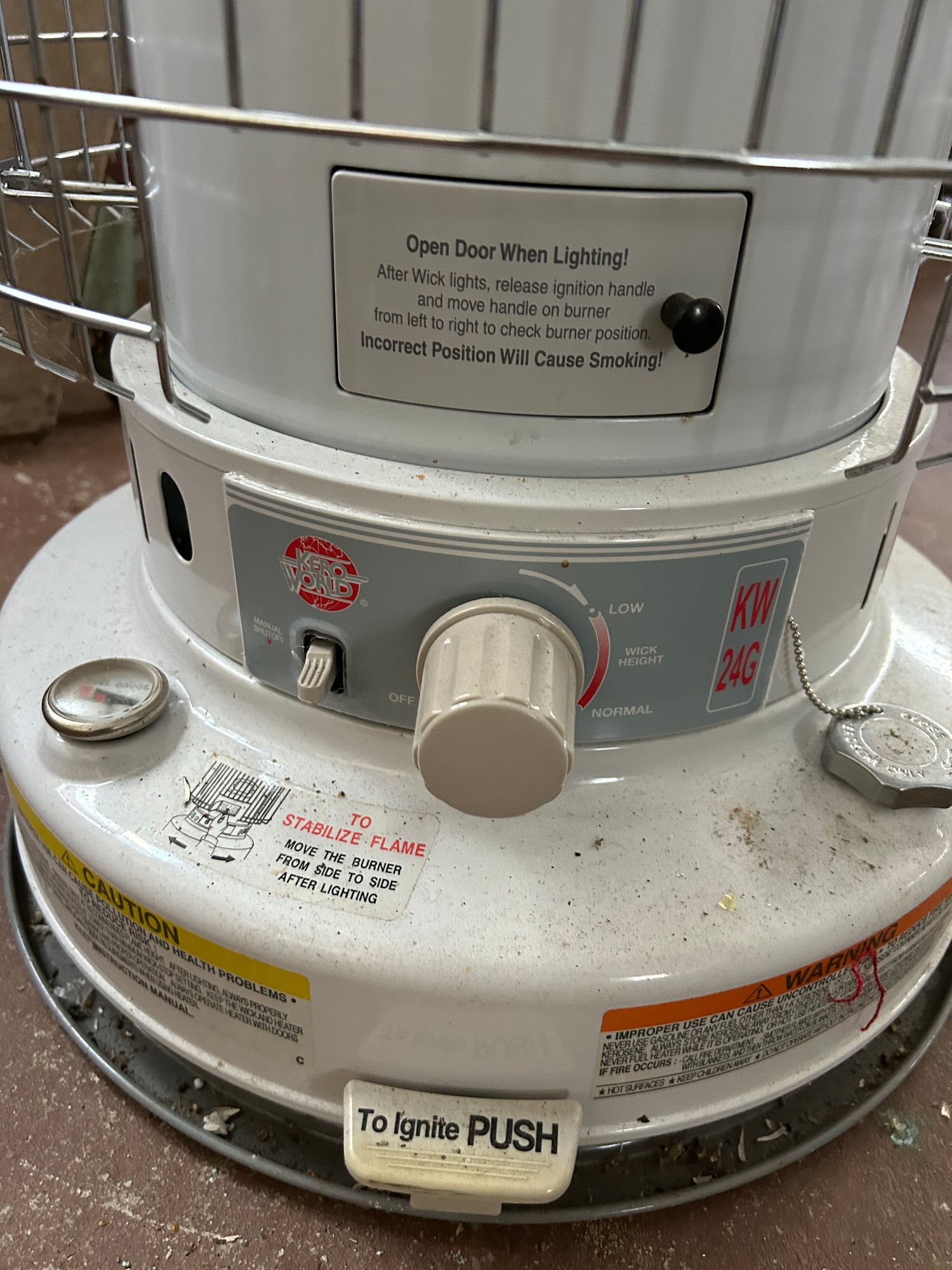 Kerosene space heater in excellent condition. 17 inch diameter 27 inches tall
