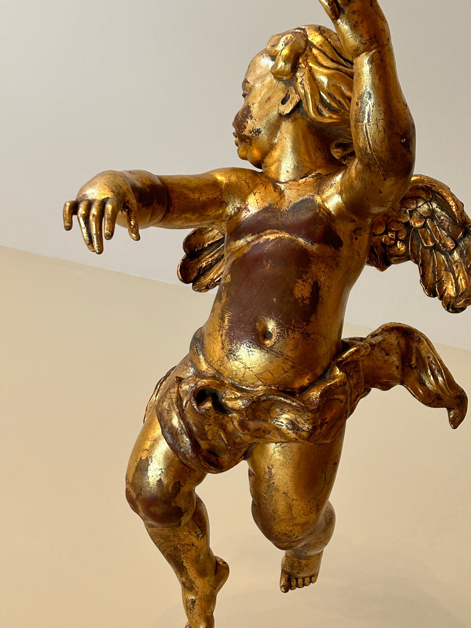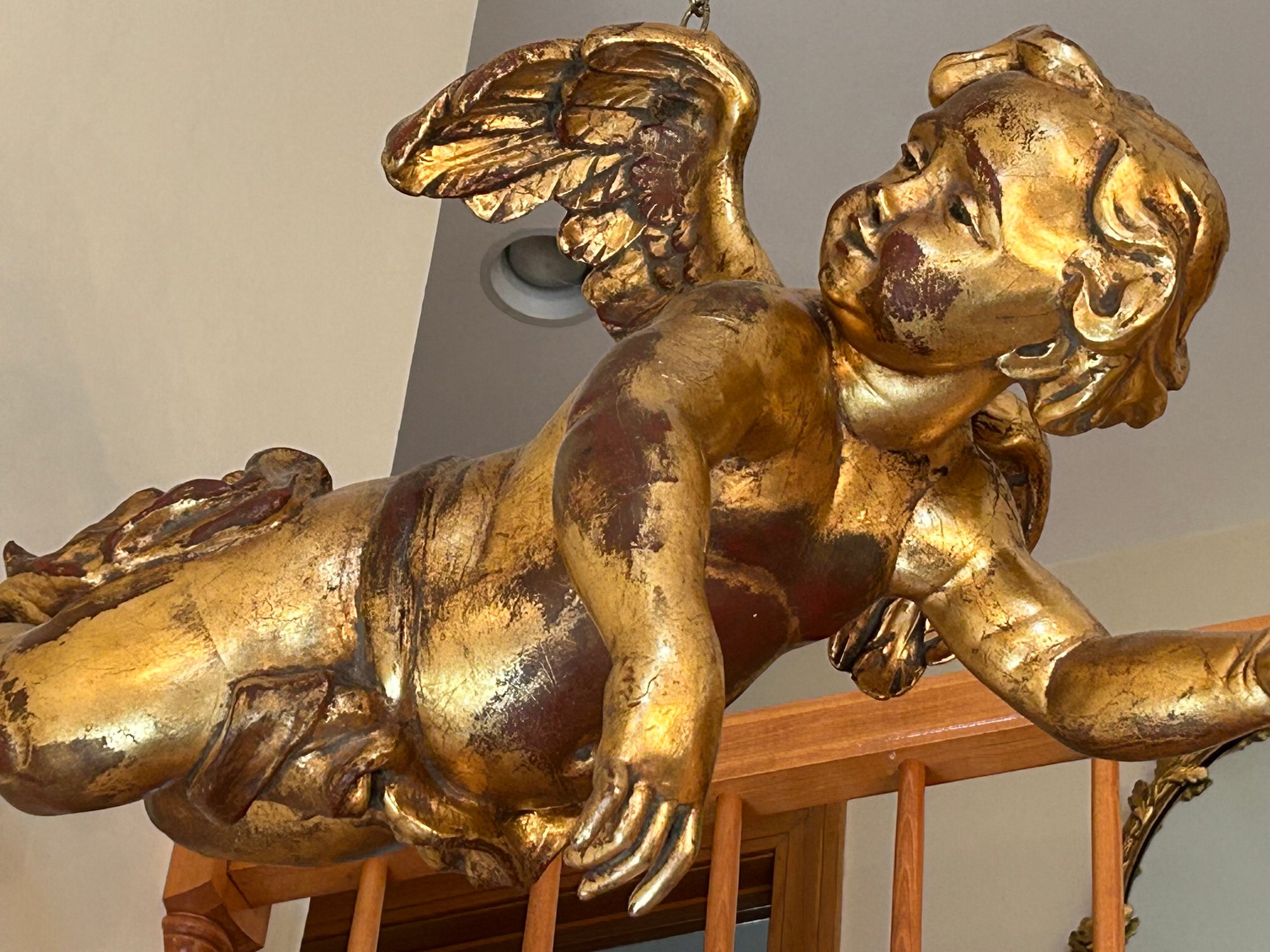 Large cherub statue painted gold made of composition 36 inches