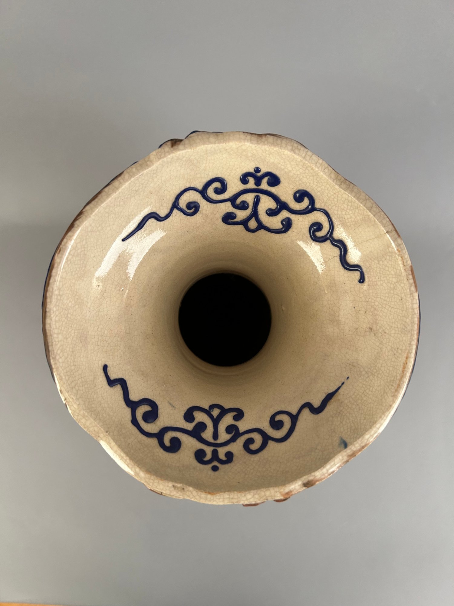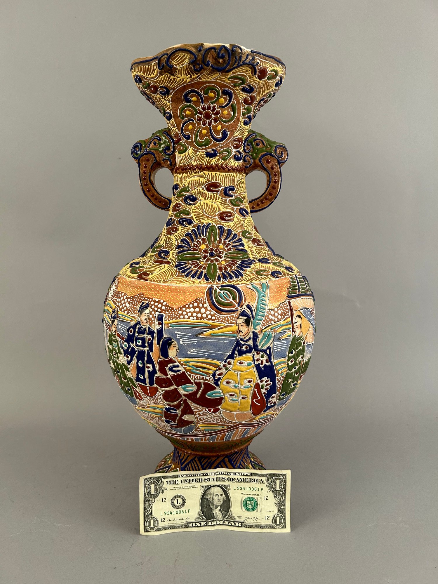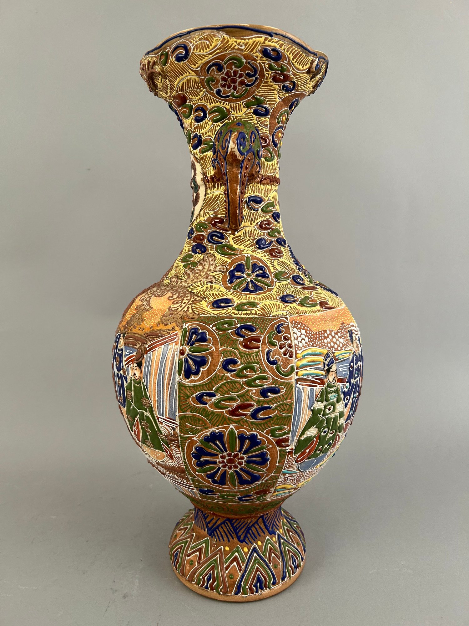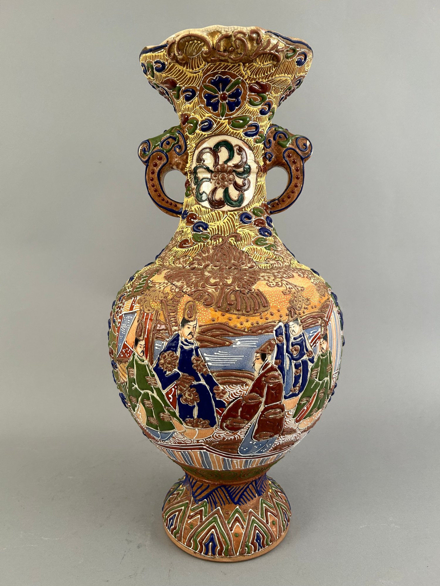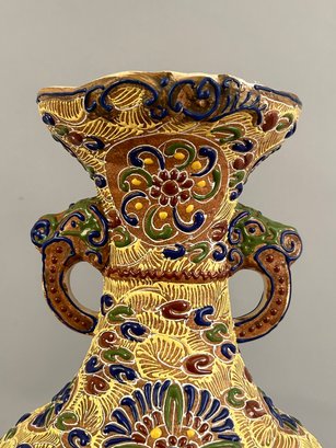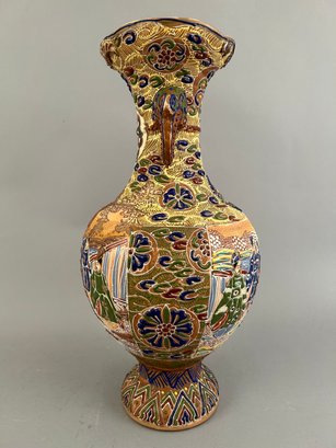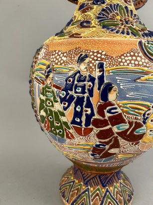 Large Japanese two handled moriage vase.