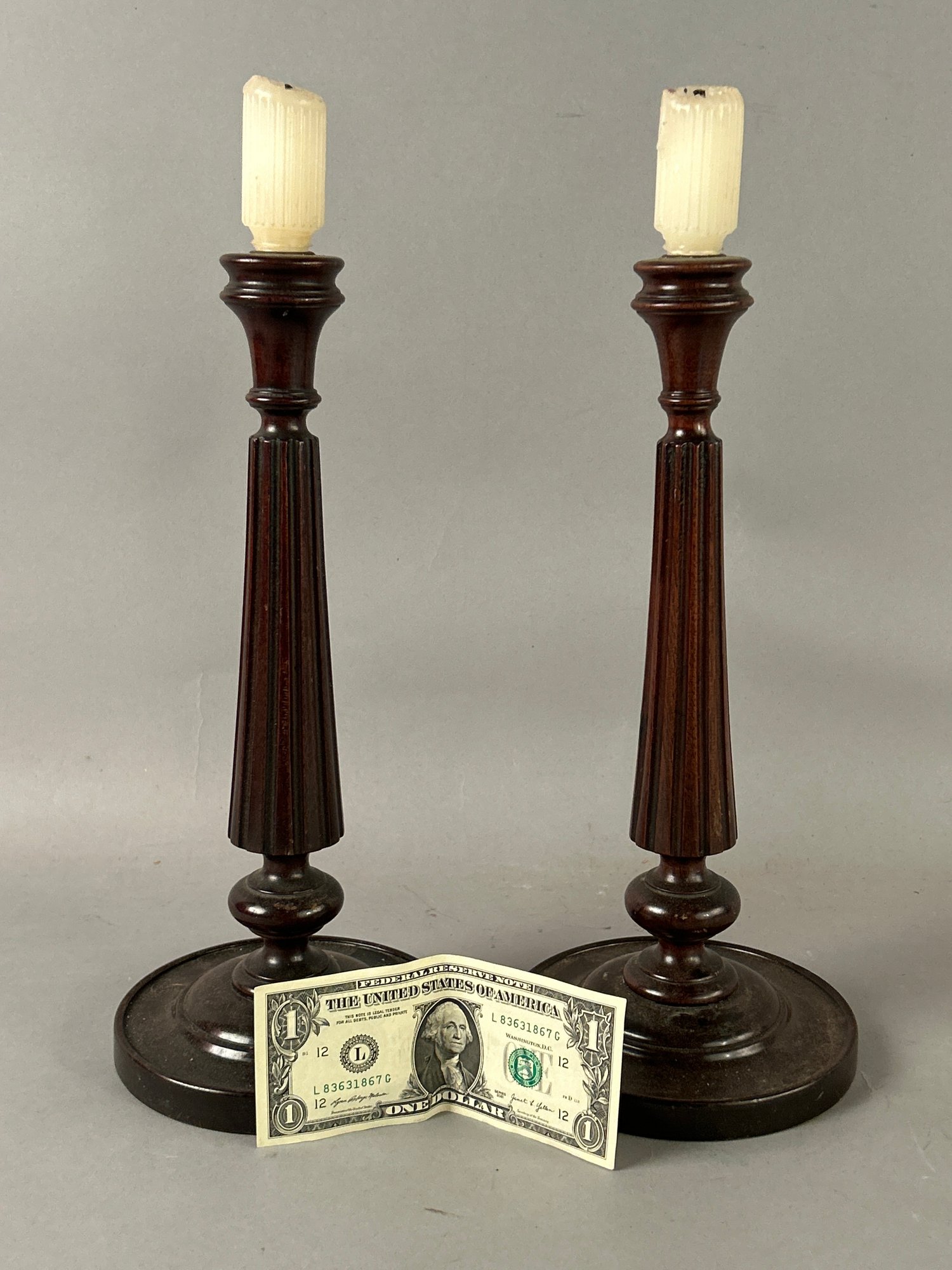 Large wood candlesticks with fluted shaft 13 1/2 inches tall