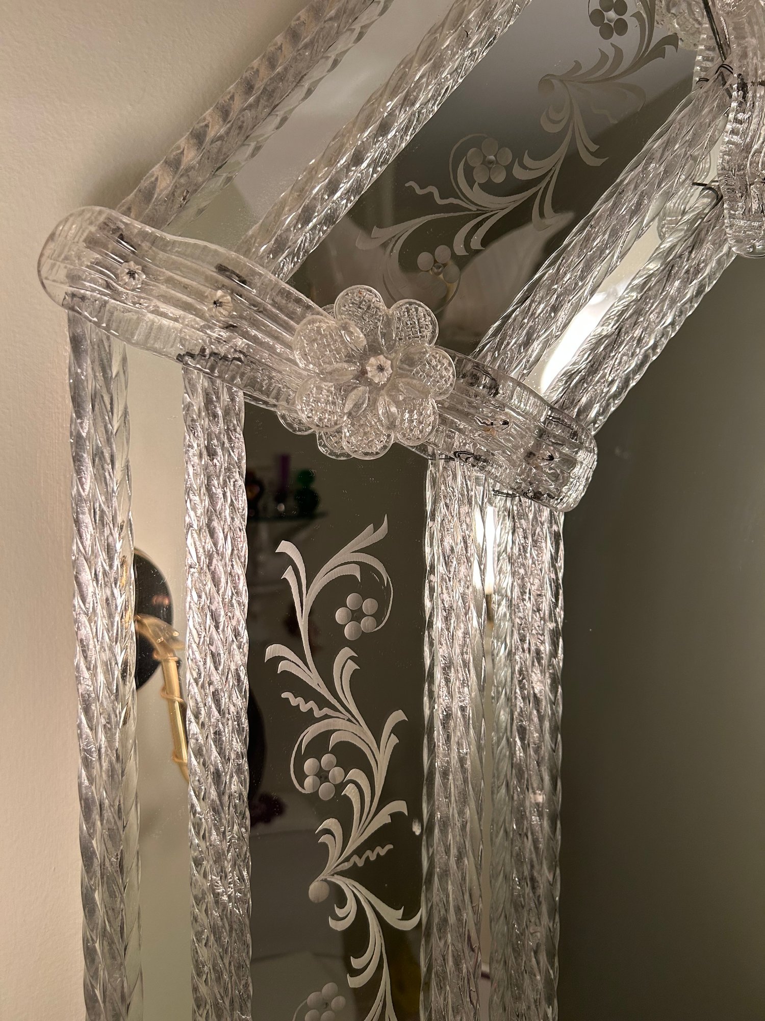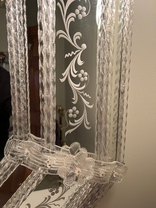 Large venetian glass mirror with etched design, floral Rosa, 44“ x 32“