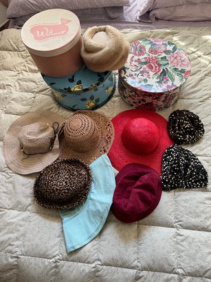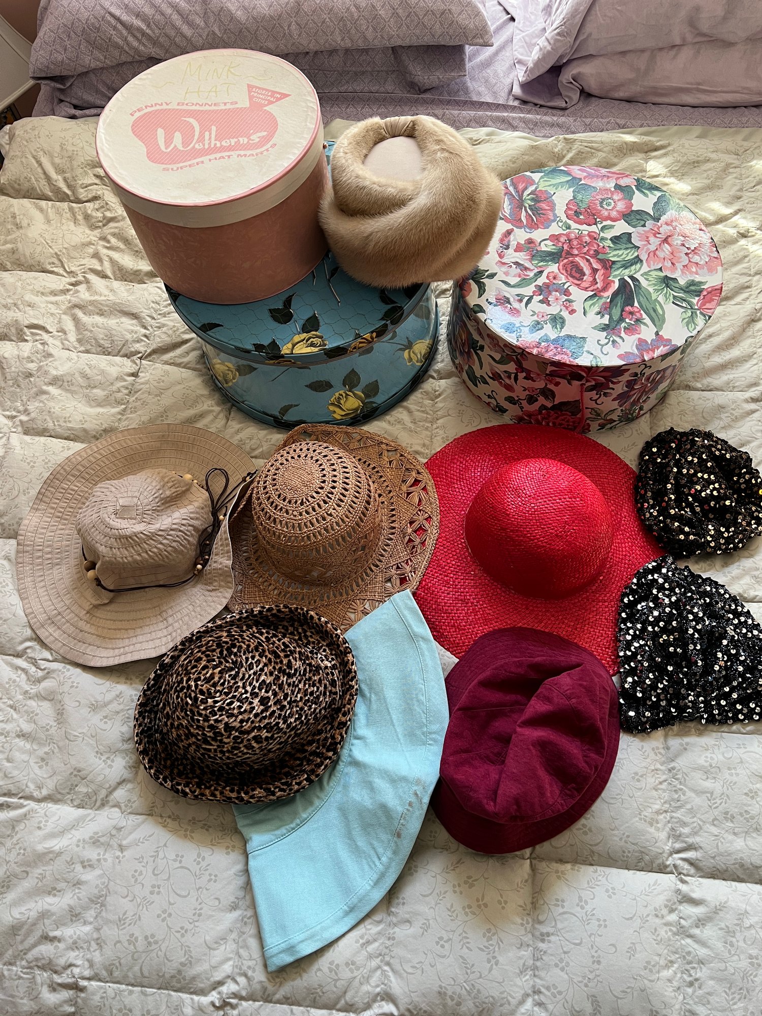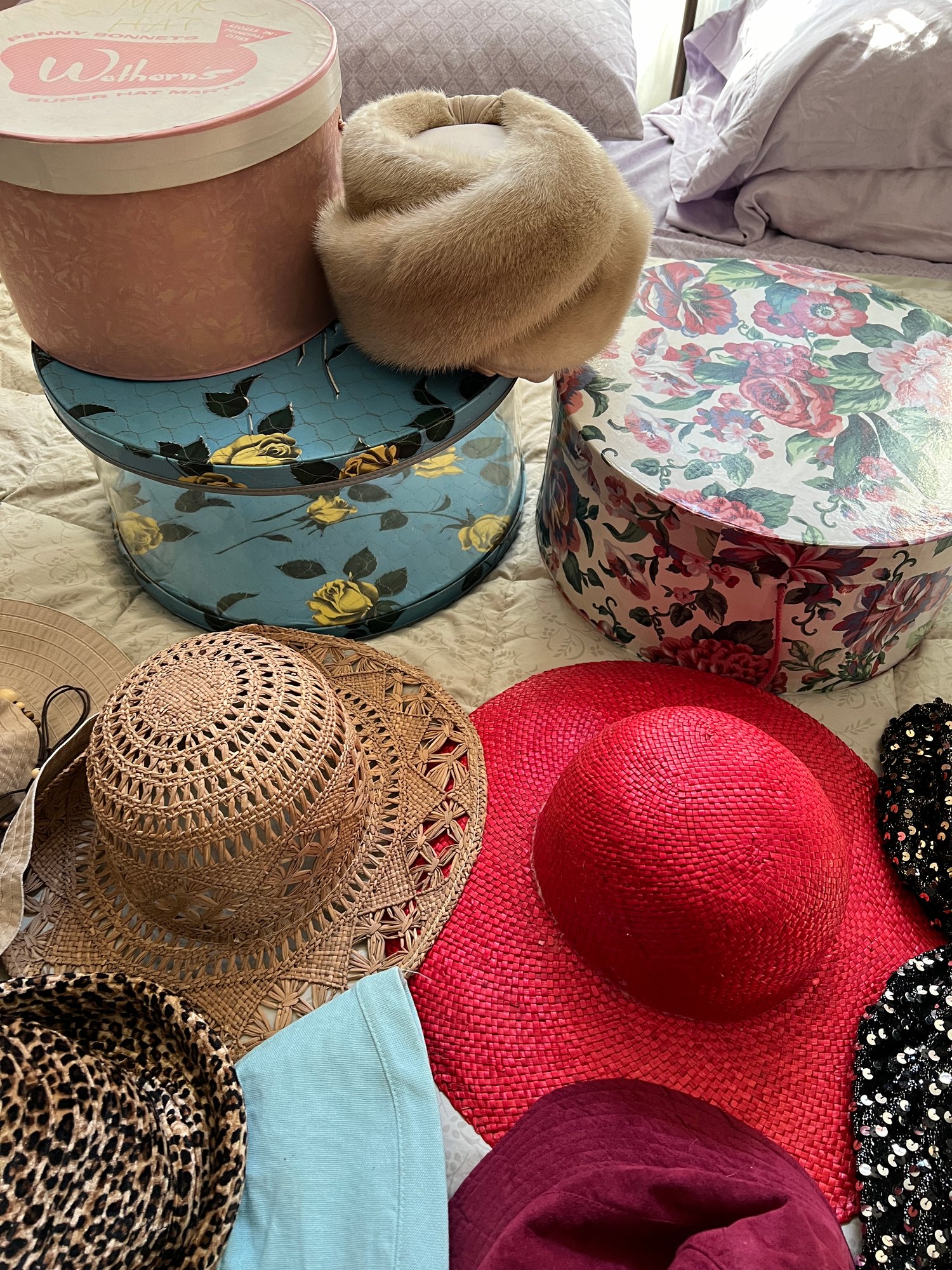 Lot of hats and hat boxes including Penny Bonnets Mink Hat