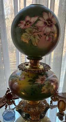 Gone with the wind lamp, Juno lamp made in USA Miller patented 1895. 30 inches tall 14 inches in diameter.