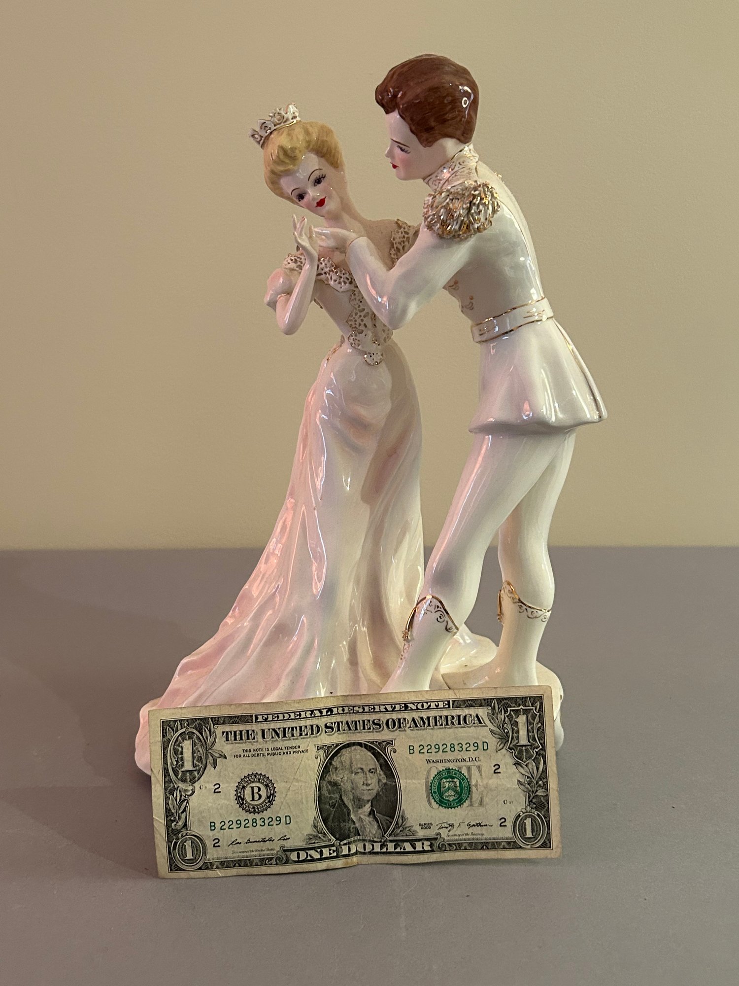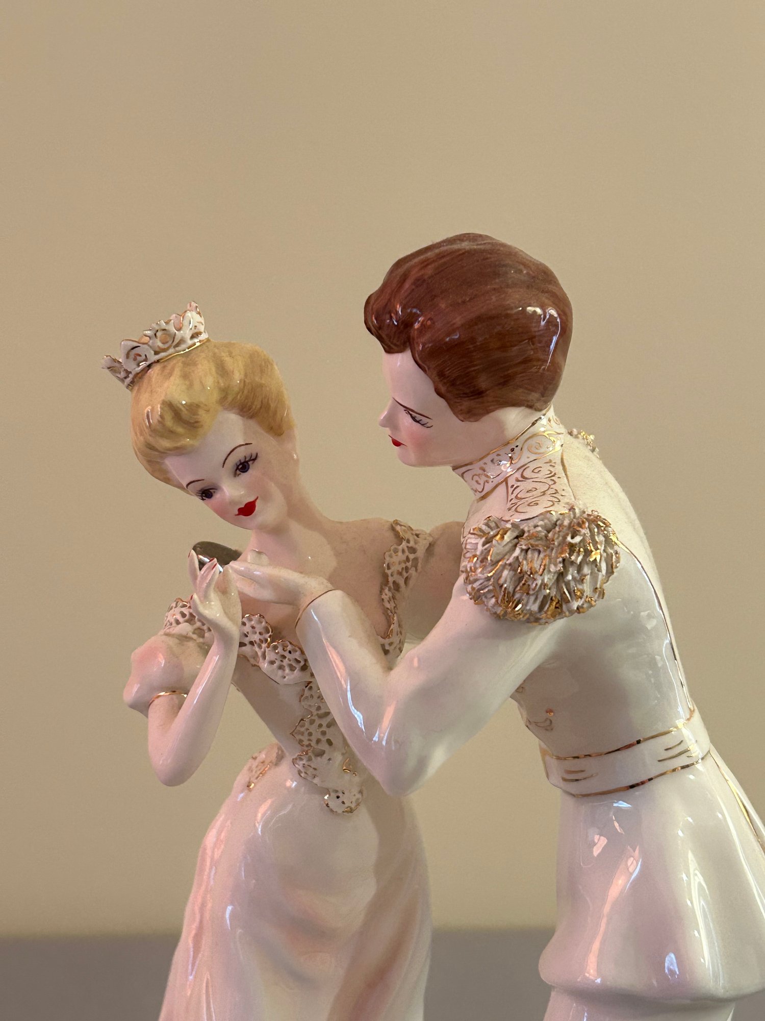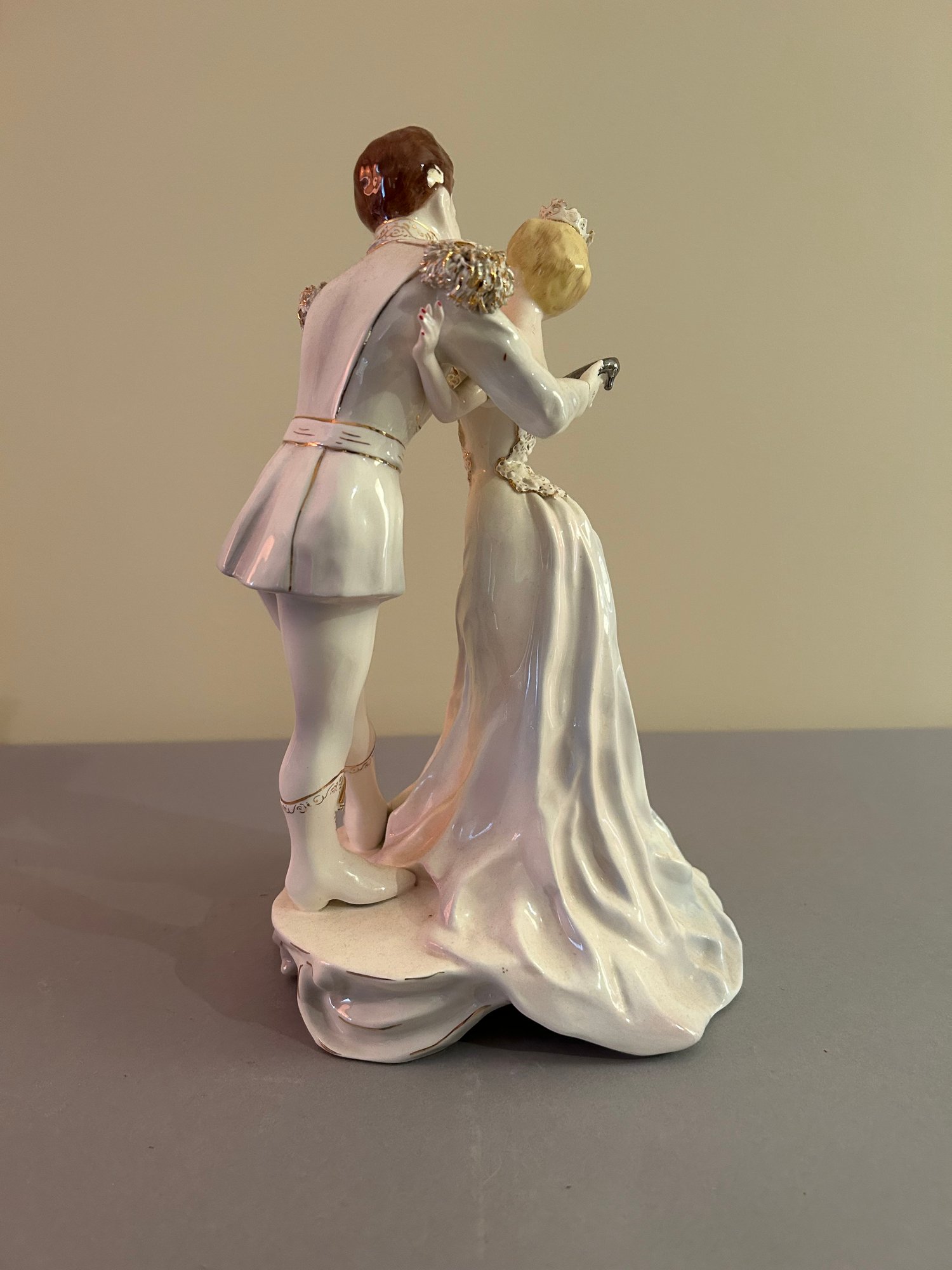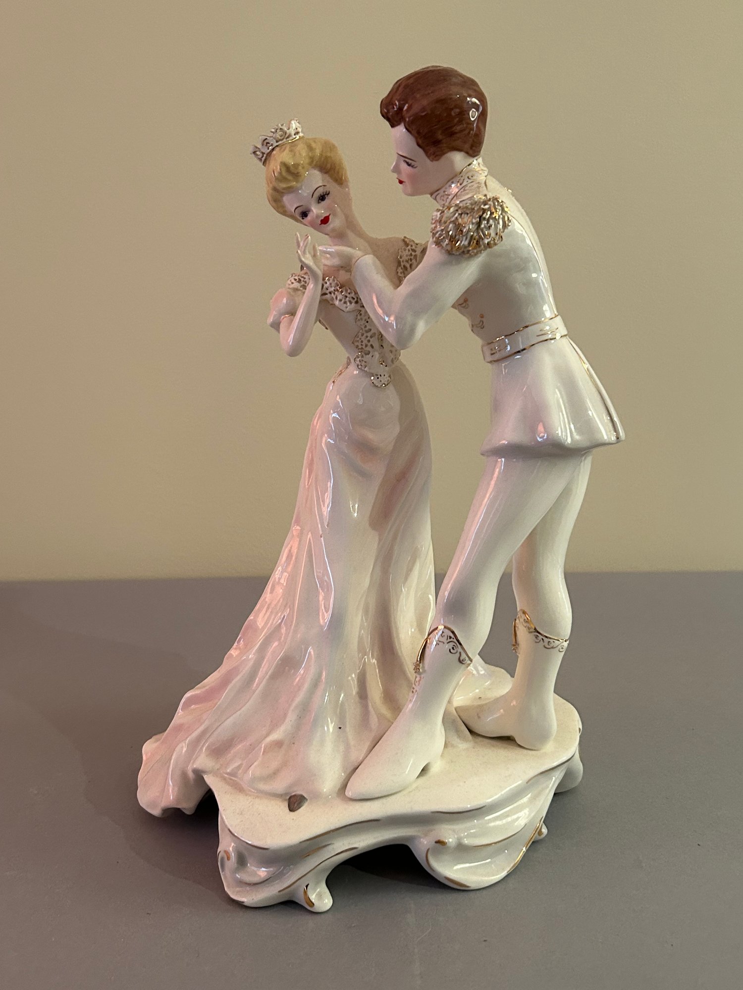 Porcelain Dancing Couple With Gold Accents. Height 12 inches