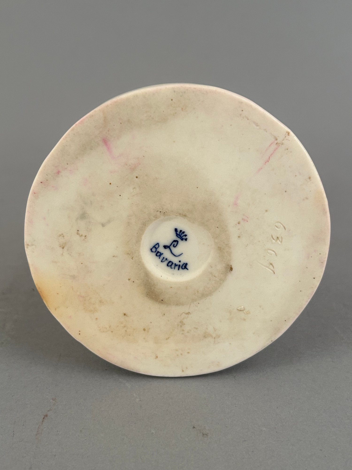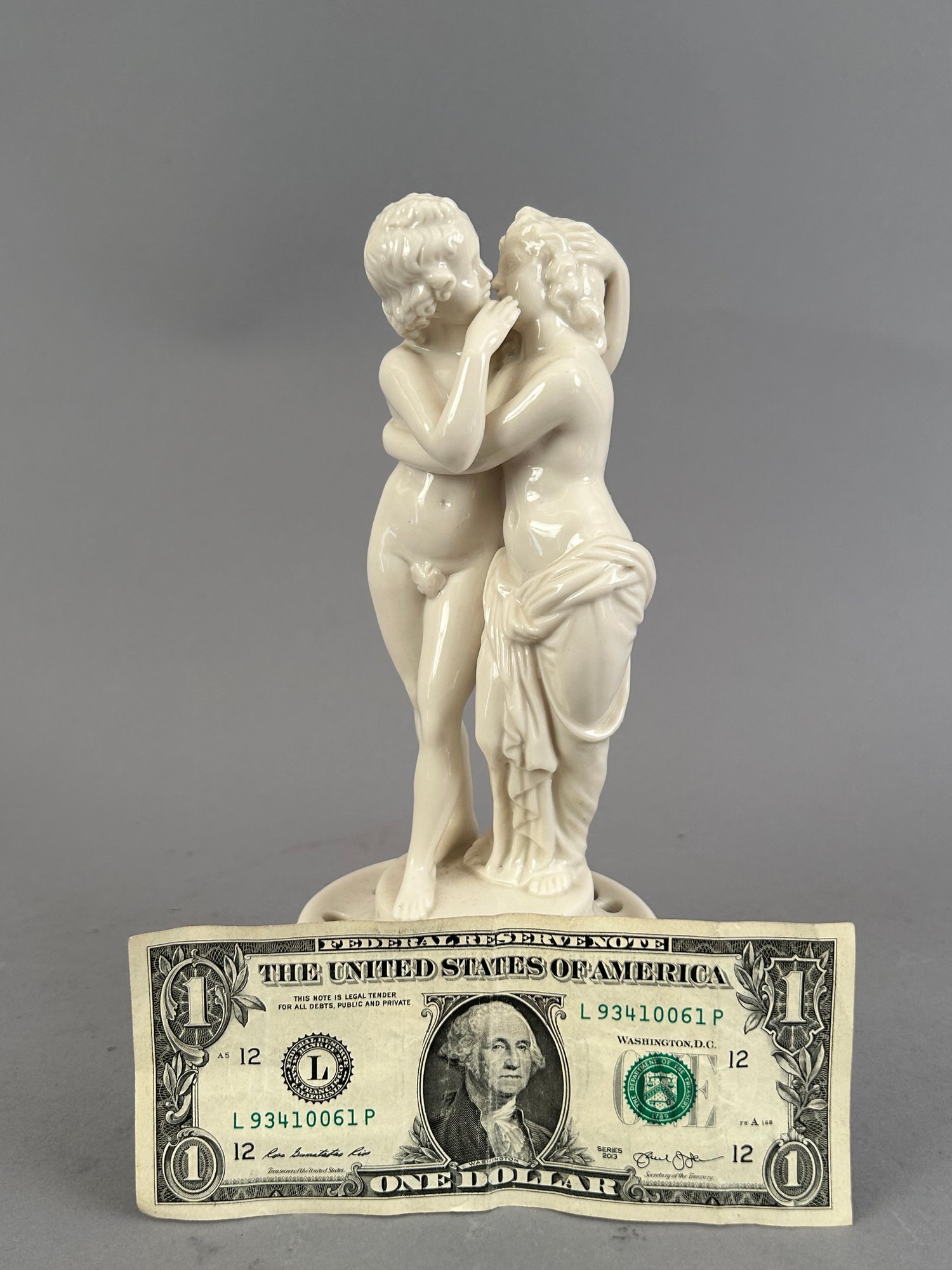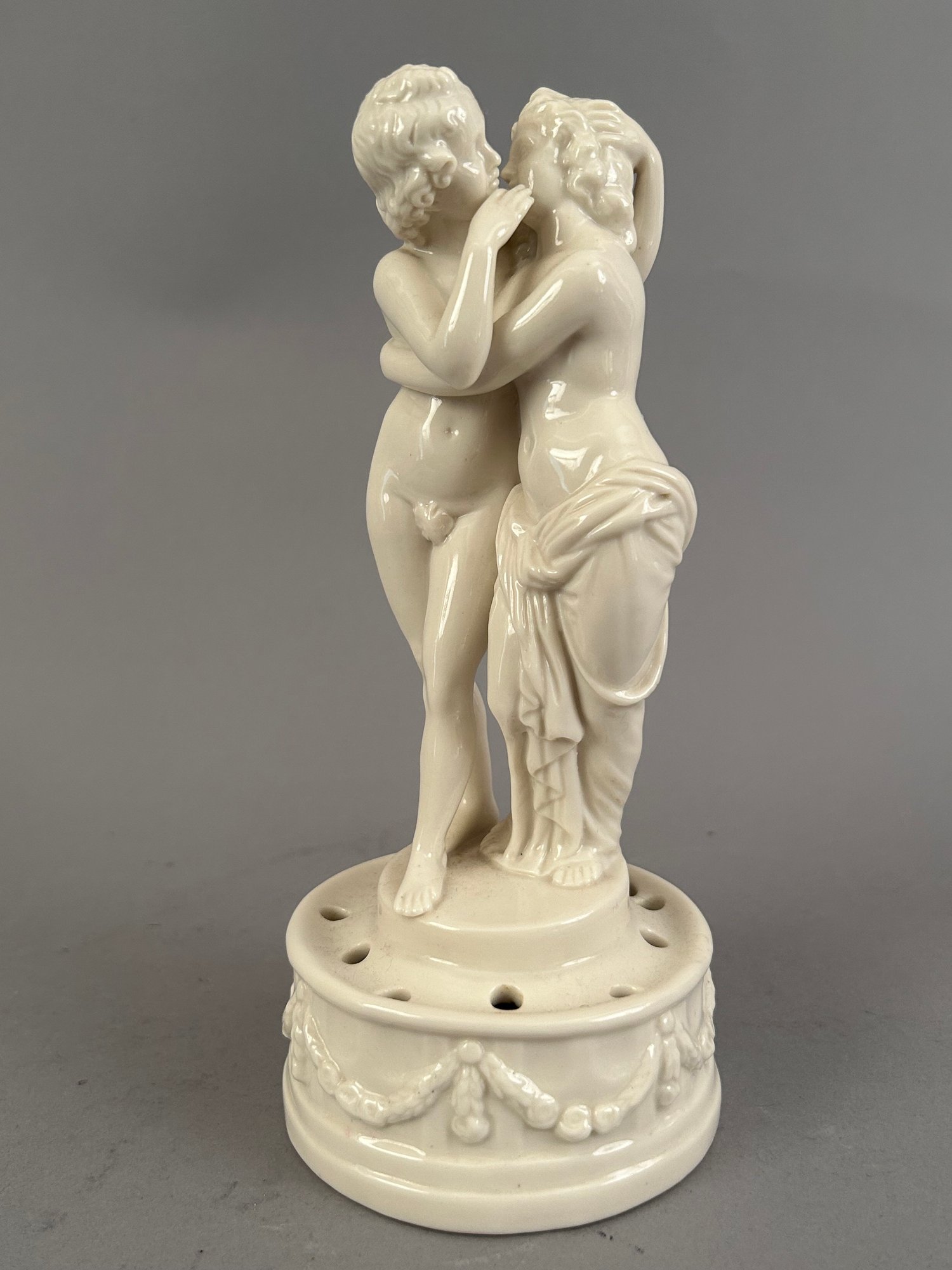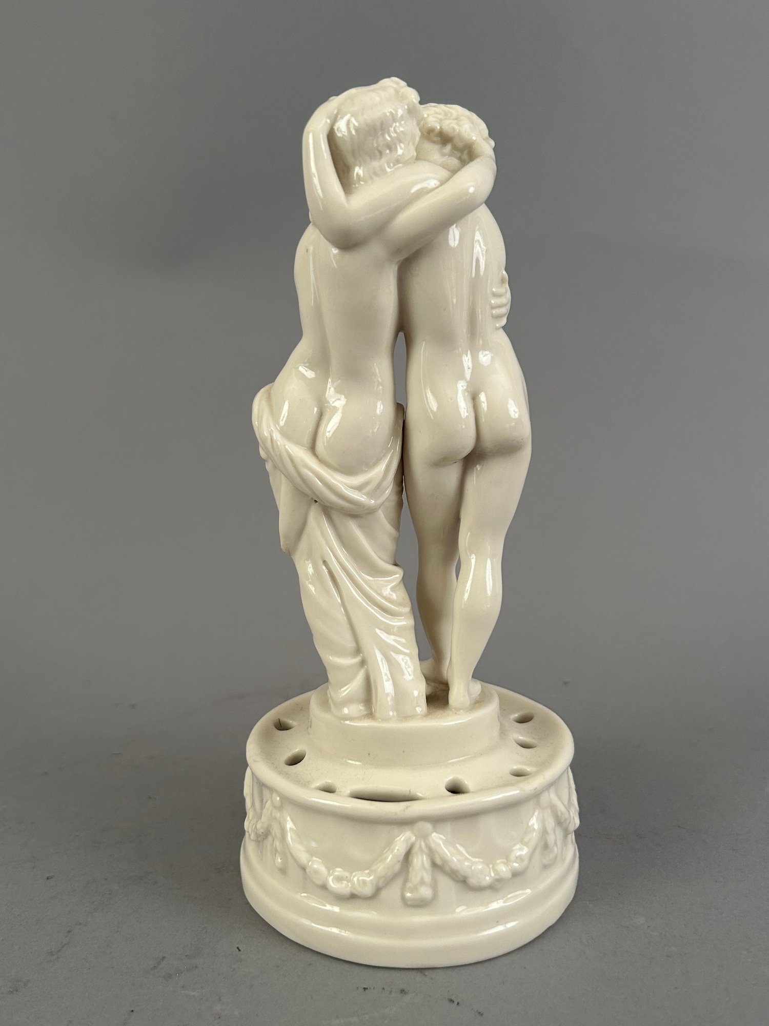 Porcelain flower frog with embracing lovers marked Bavaria on the bottom.