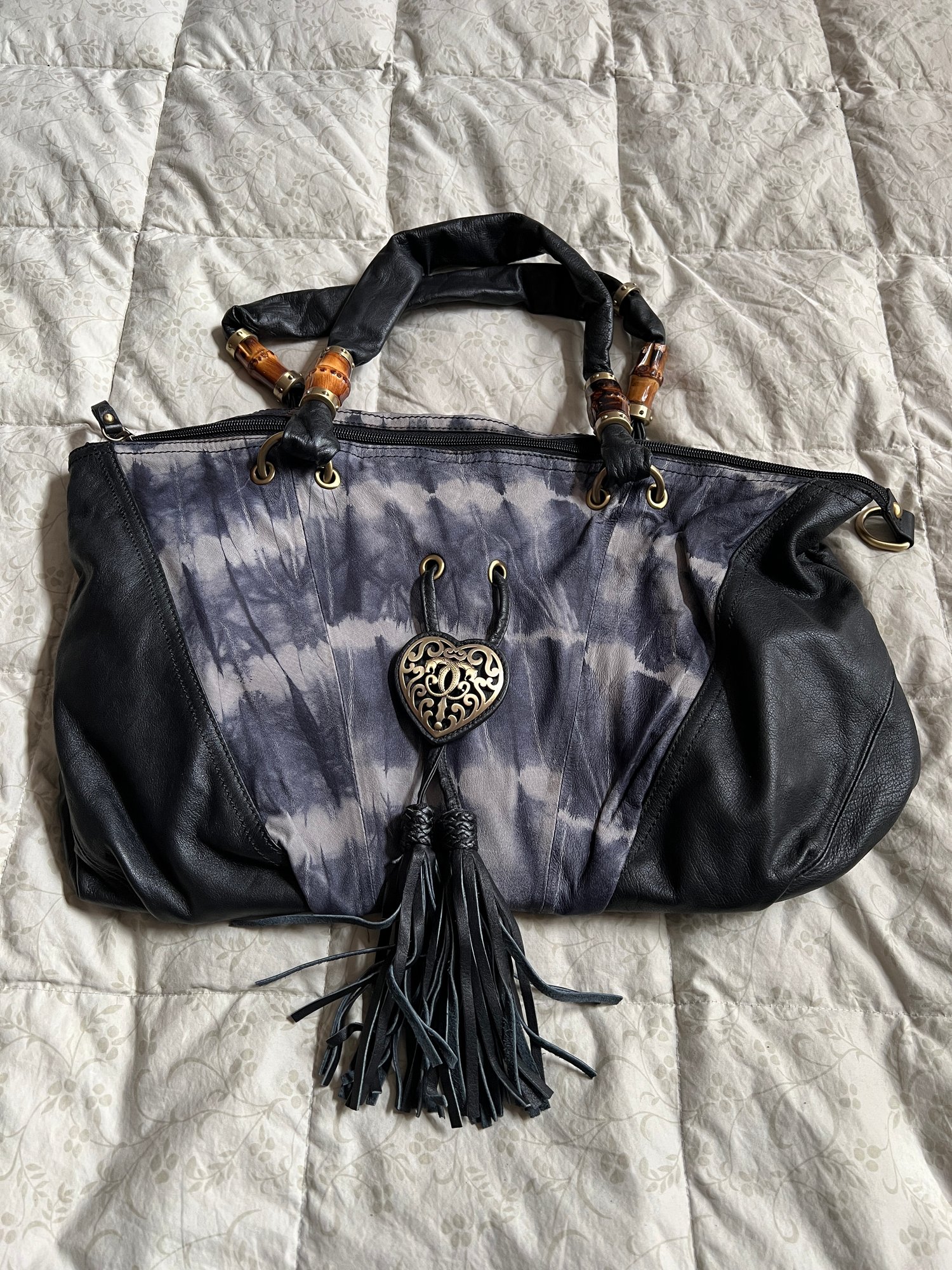 Original by Sharif purse with heart and bamboo embellishments and matching wallet