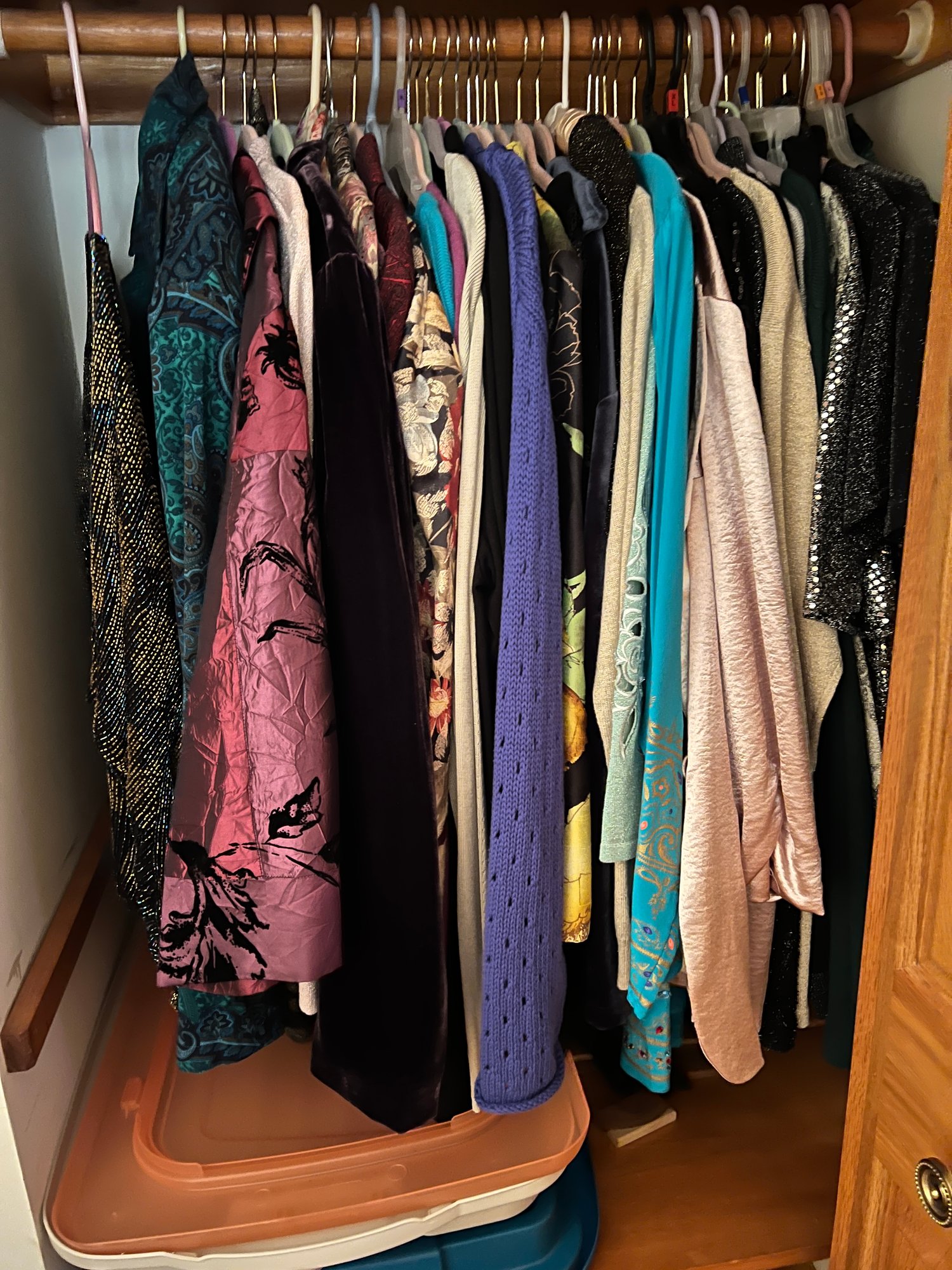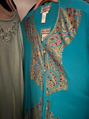 Rack of fancier tops included a gorgeous beaded top and several other sparkly tops. (II)