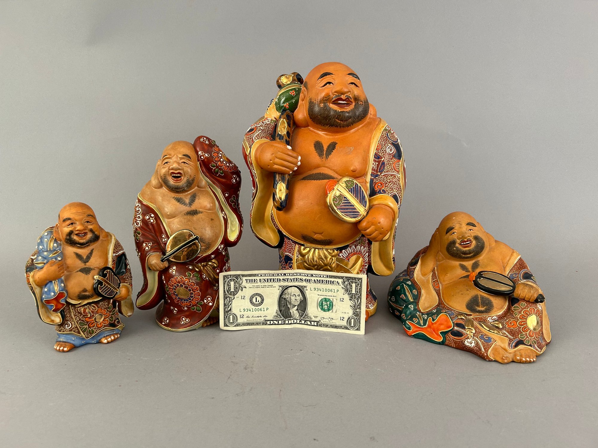 Group of four Hotei statues in varying sizes