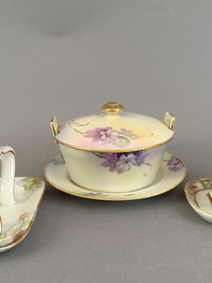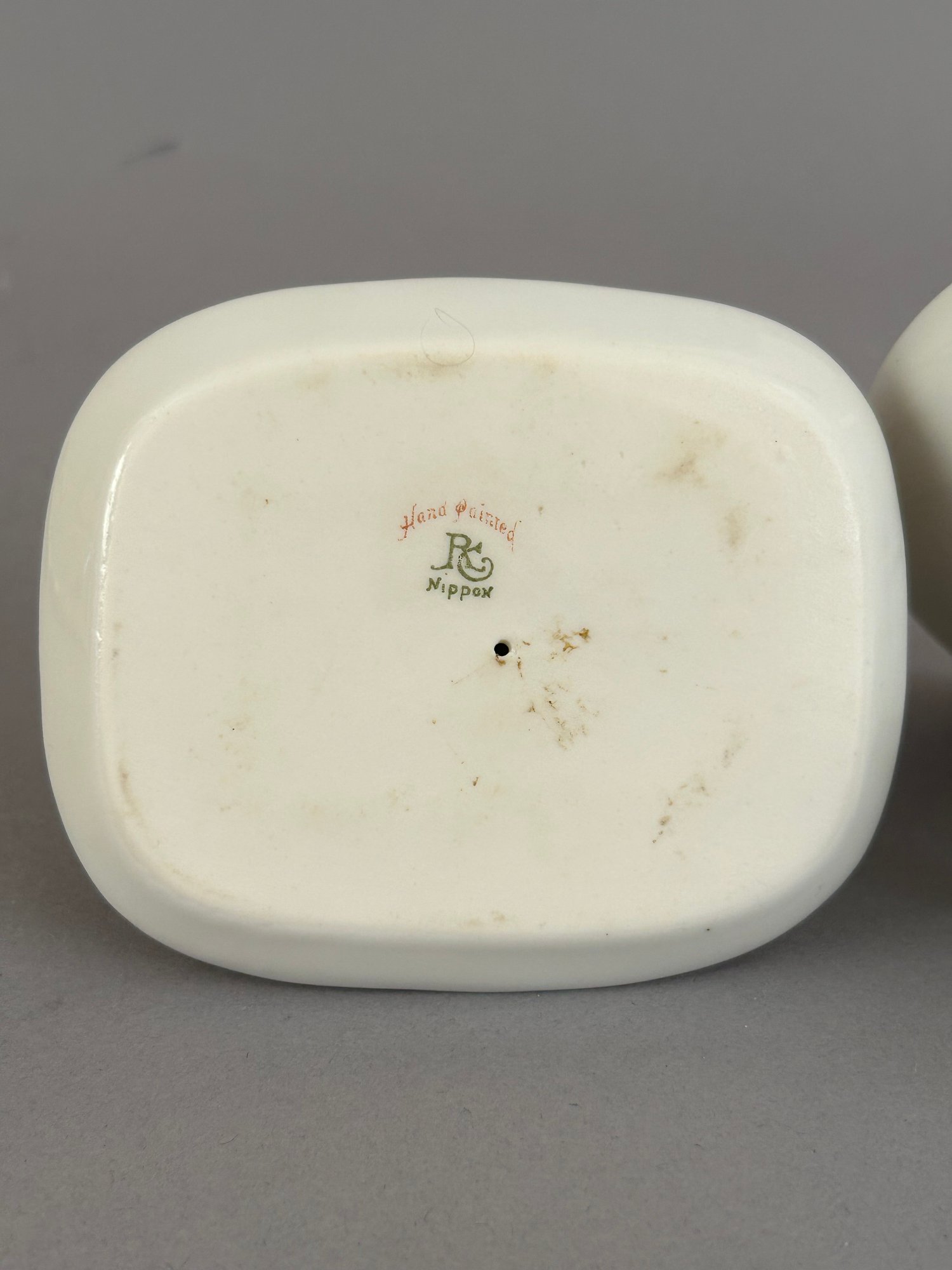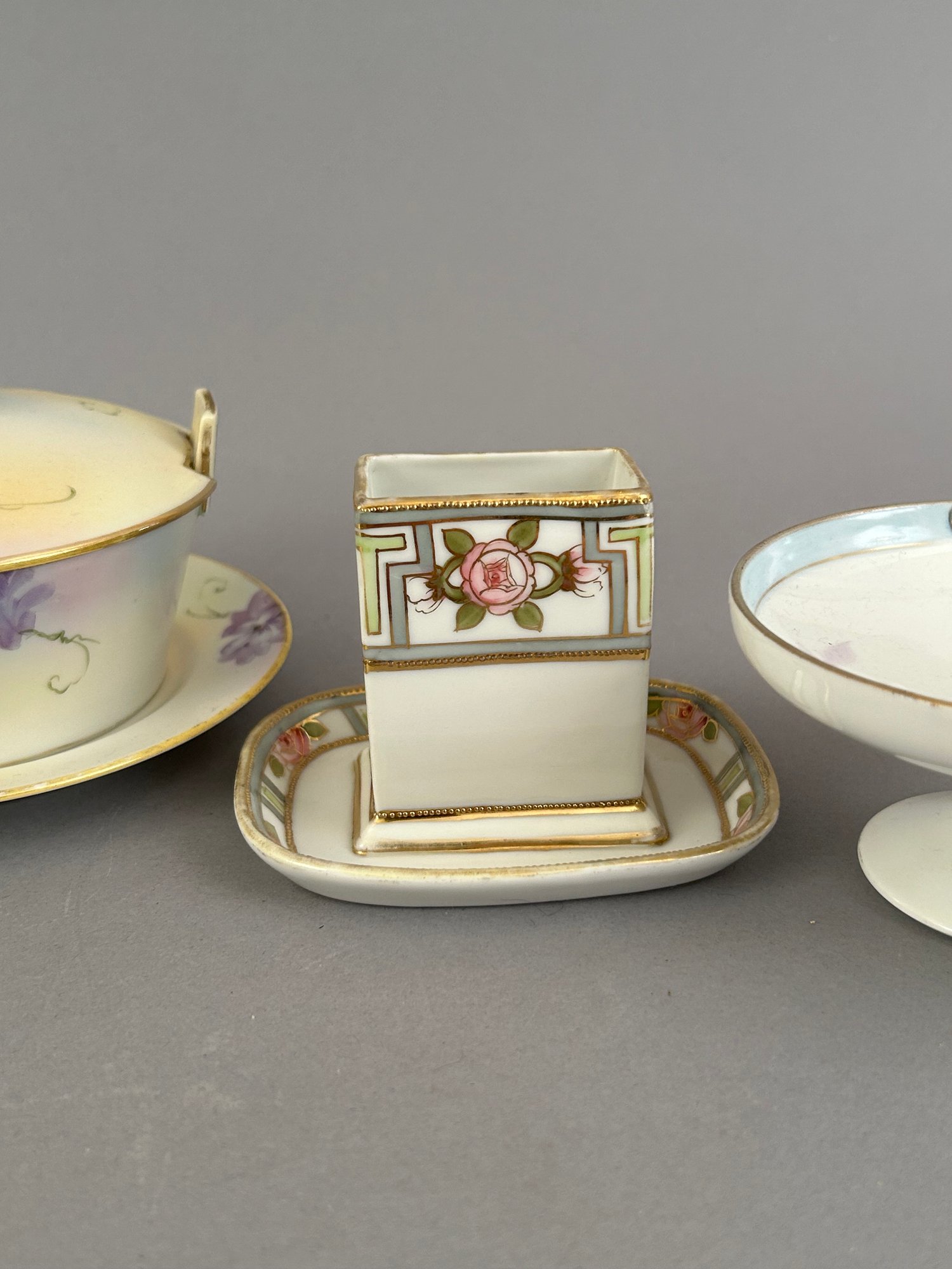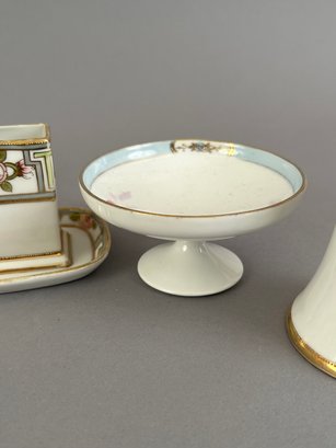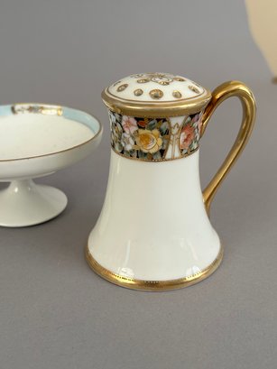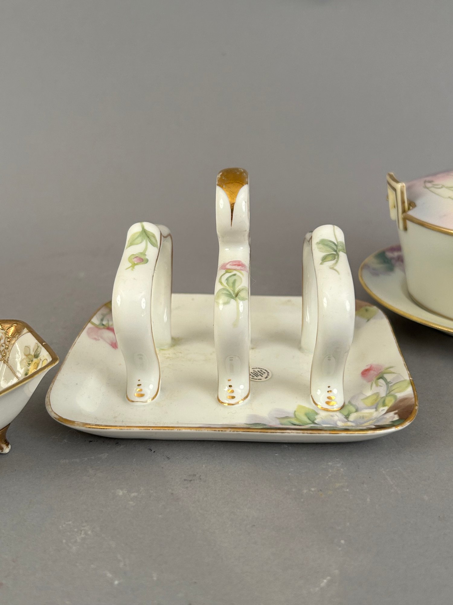 Seven pieces of Hand painted Nippon including salt and pepper shakers, toast holder, match holder and more. Marked on the bottom.