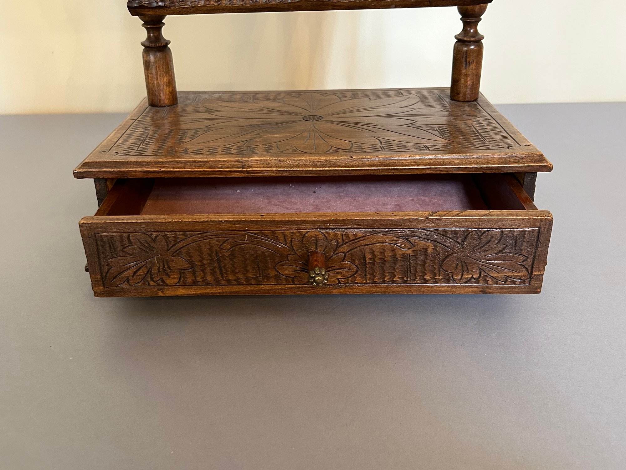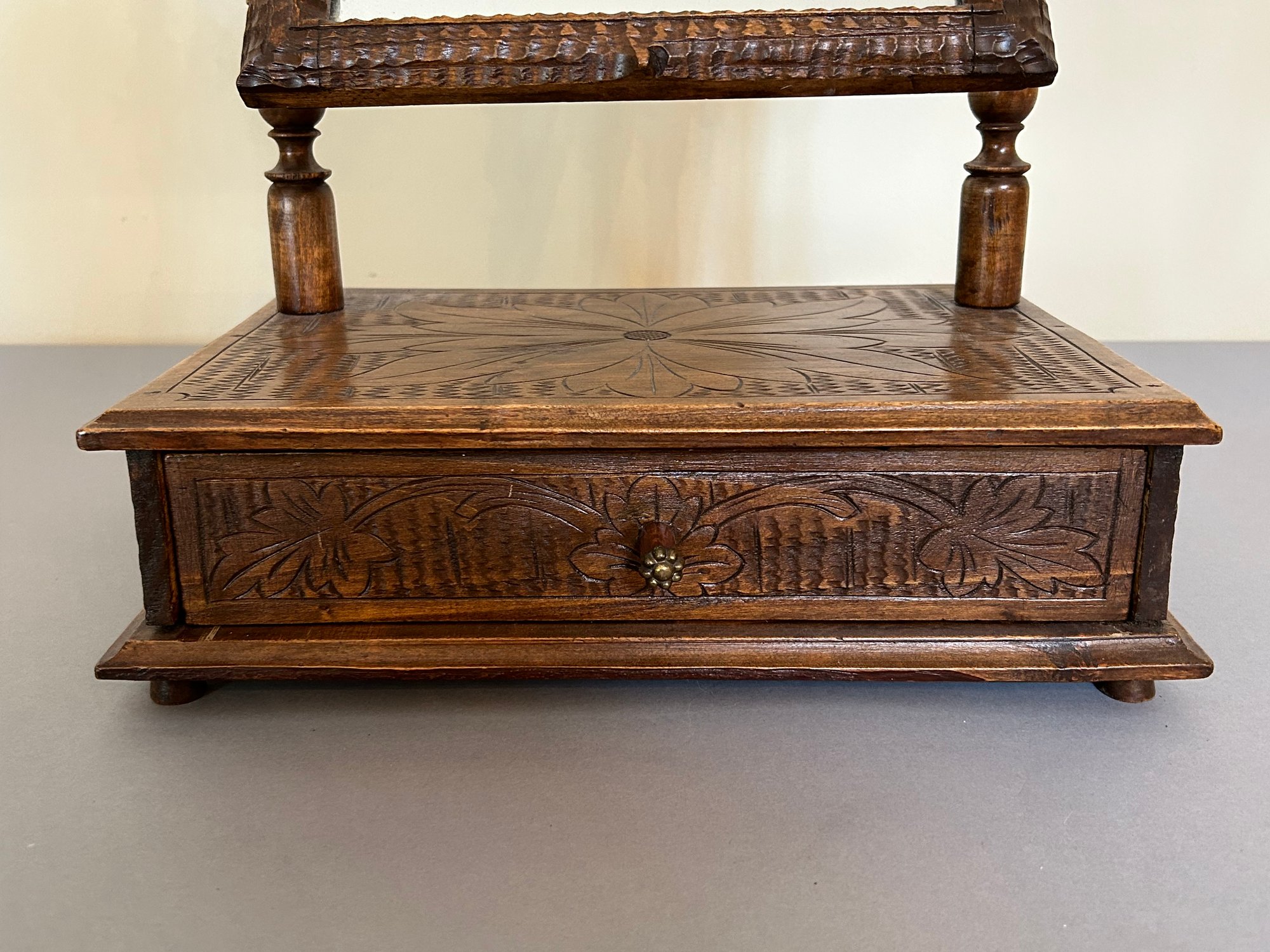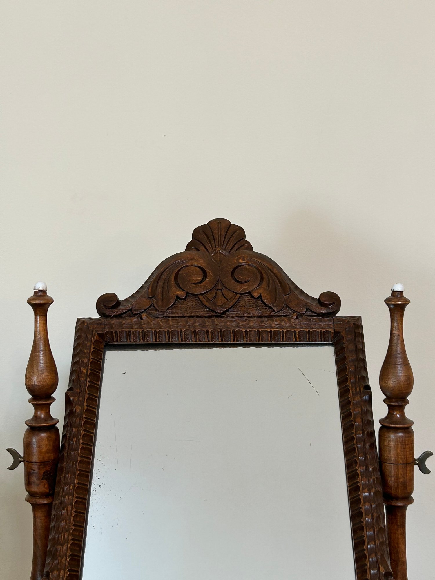 Shaving mirror with carved decoration. 22 inches