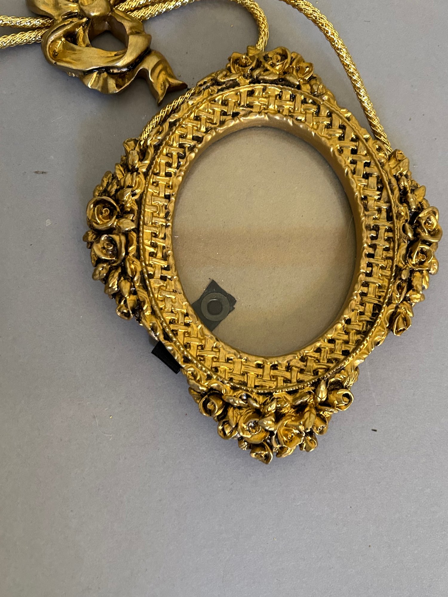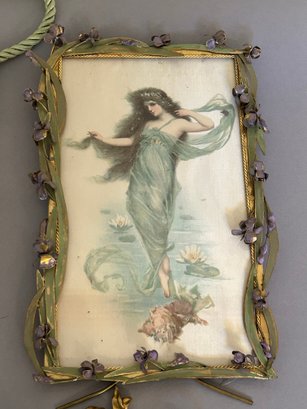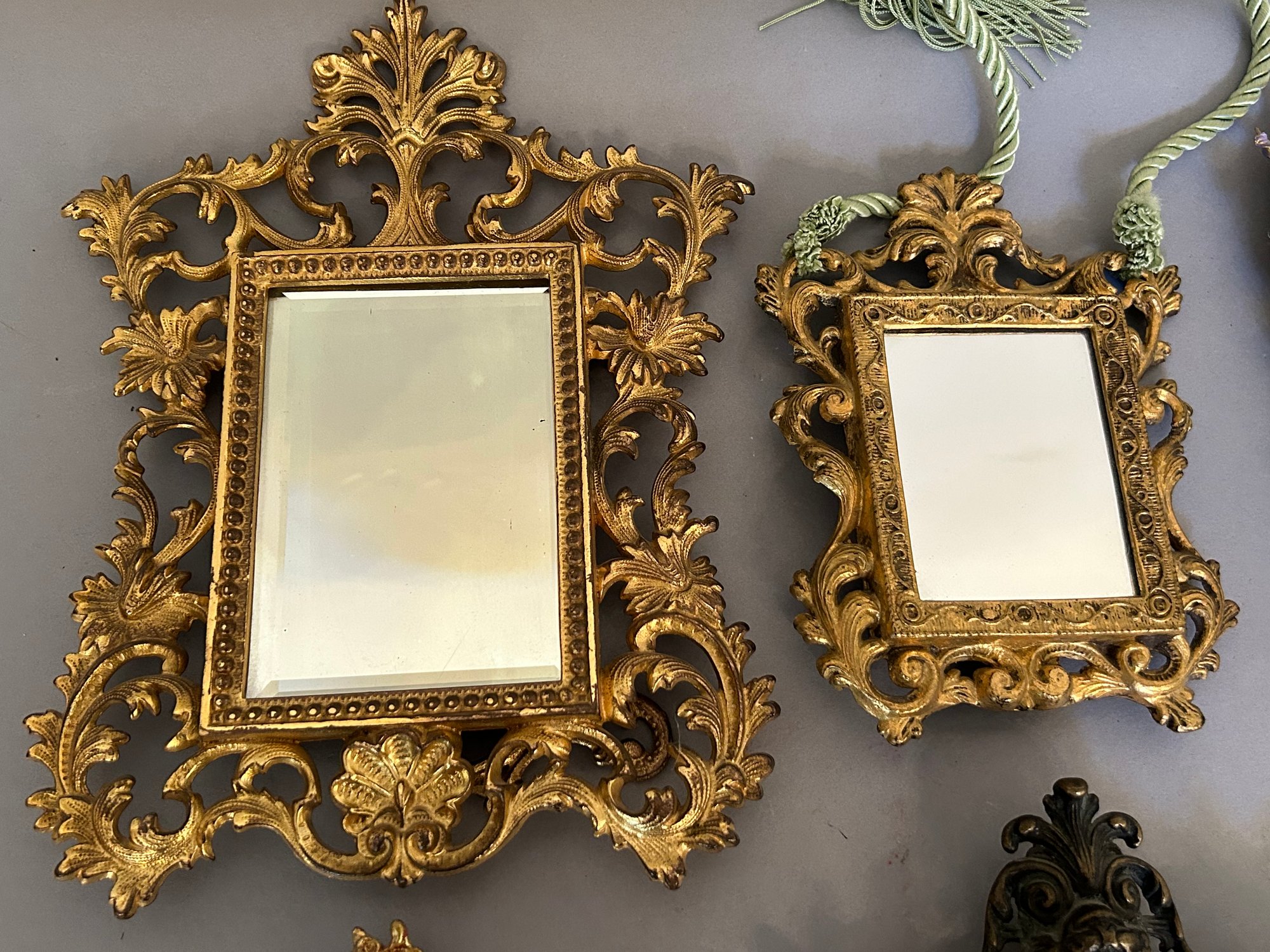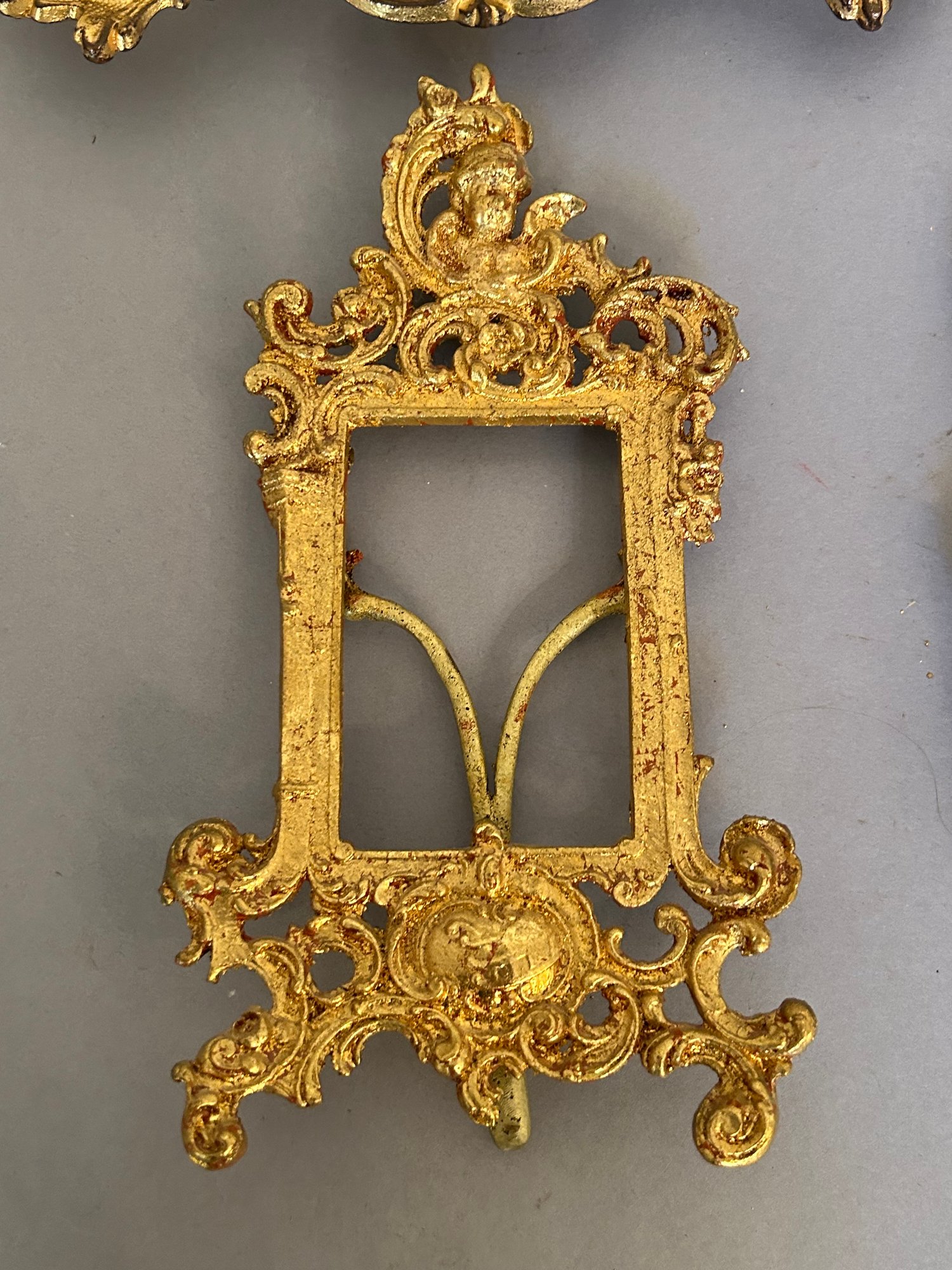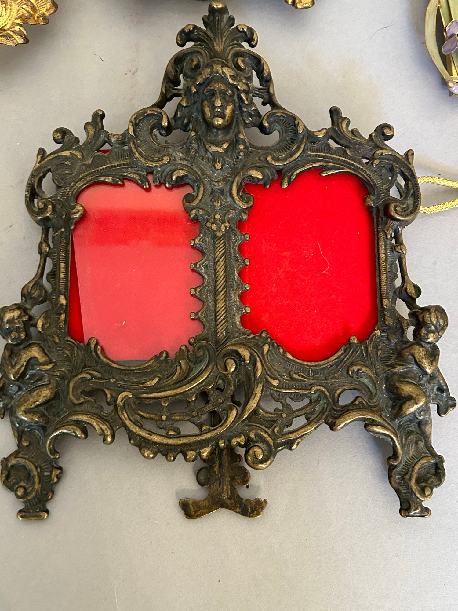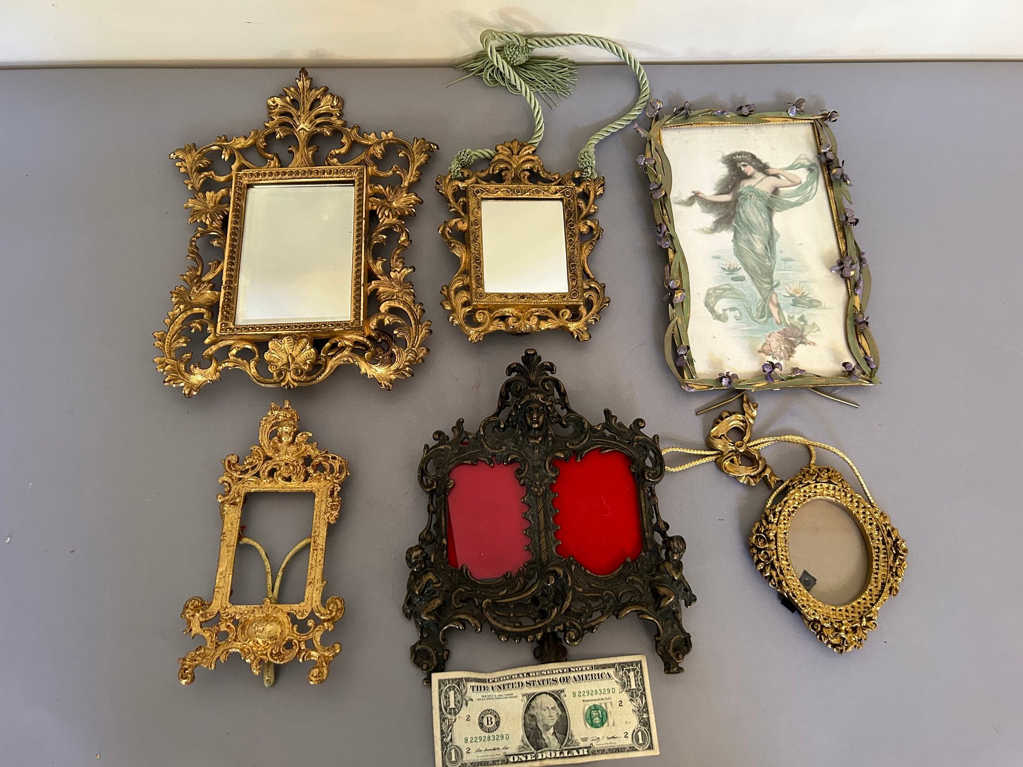 Six Iron and brass frames. One with print of girl. Largest one 12 inches.
