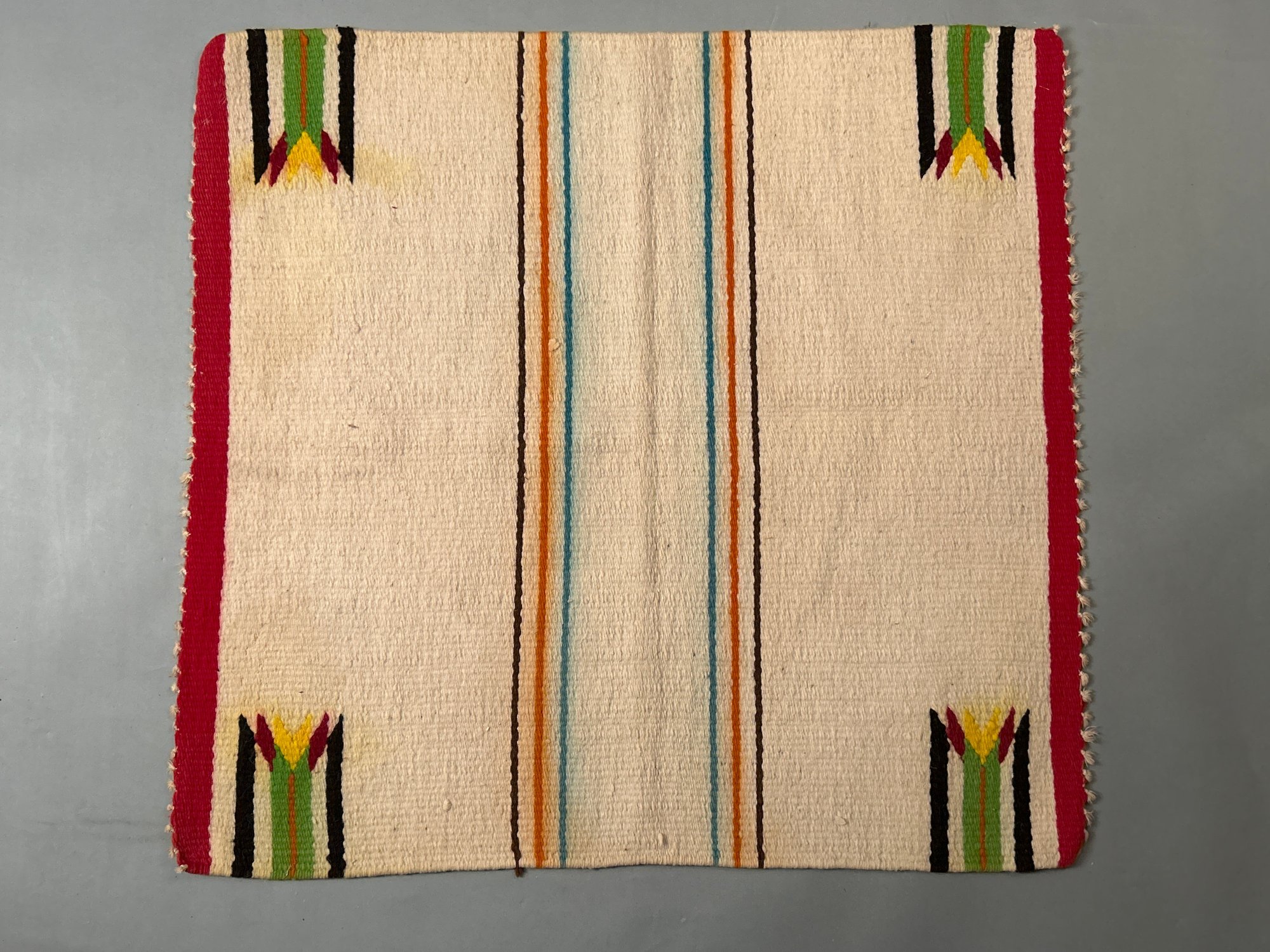 Small size Indian blanket, bright vibrant colors, some discoloration see pictures 30“ x 32“
