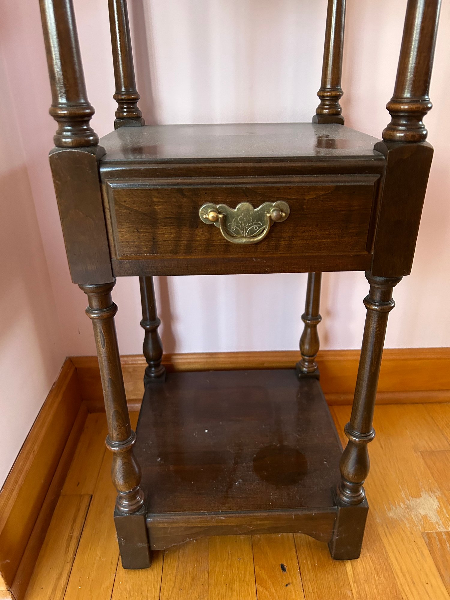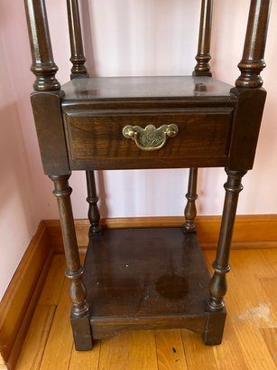 Small size four tier shelf unit. Single drawer Pennsylvania house furniture. Limited edition 12” x 12” x 40 1/2” tall.