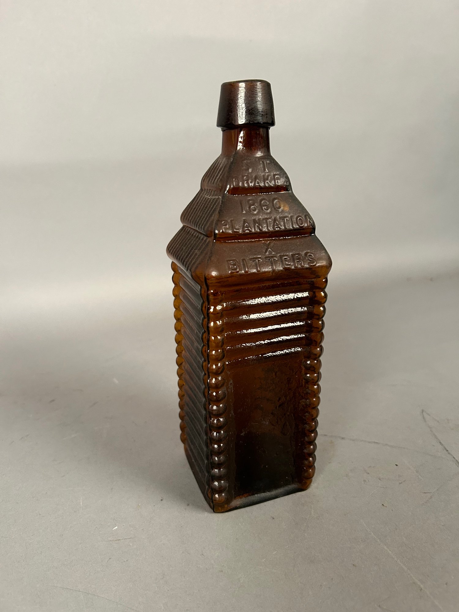 St Drake’s 1860 Plantation Bitters bottle. Brown Log cabin