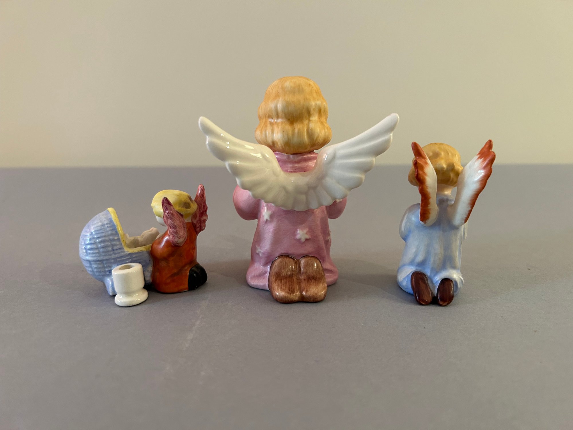 Three Goebel figures of winged angels. West Germany, Tallest 4.5 inches 3 items