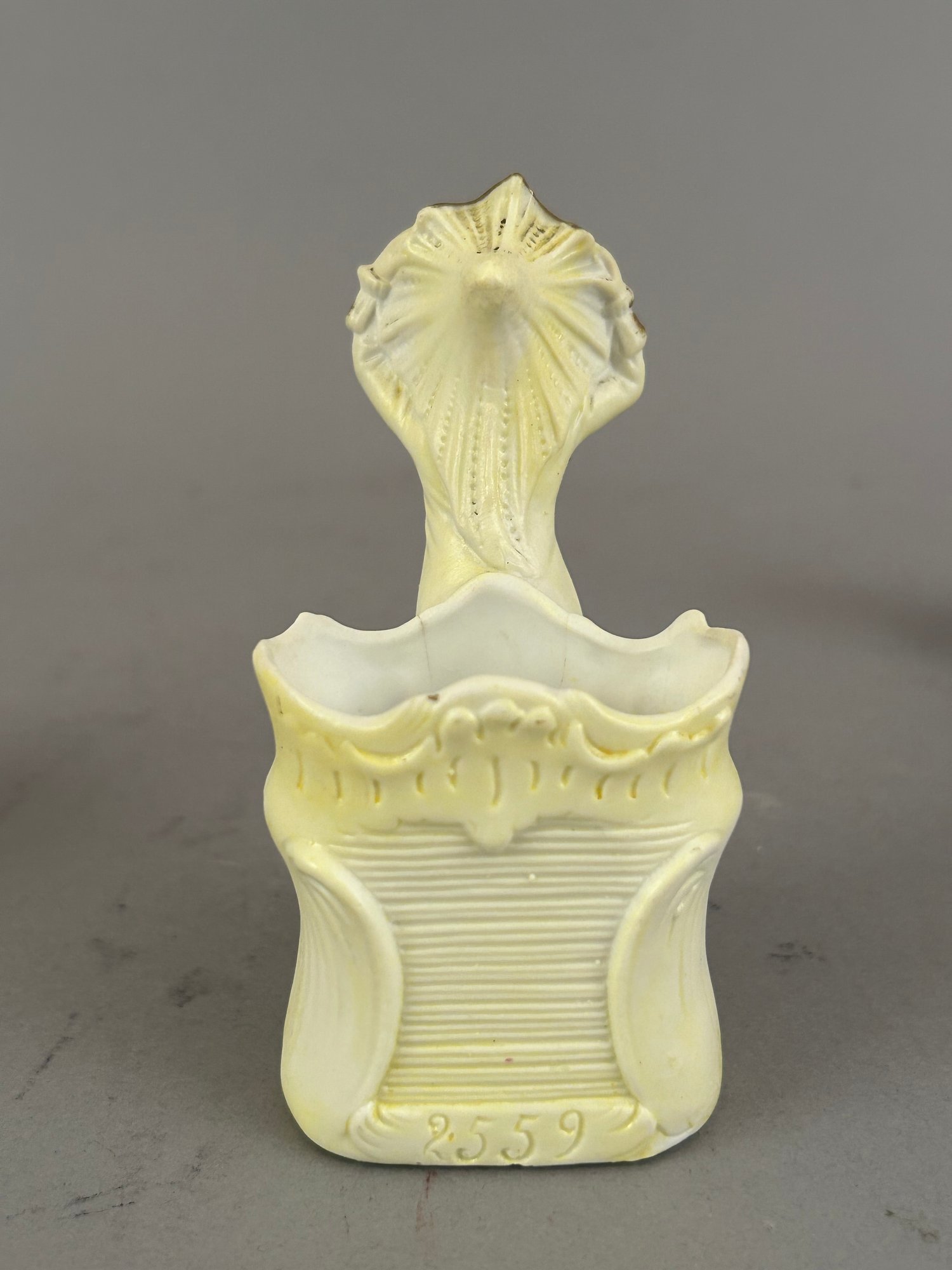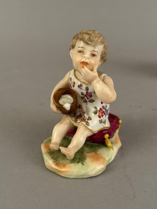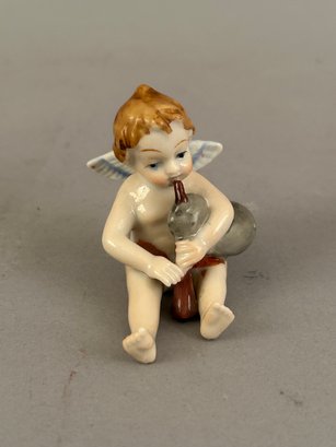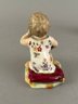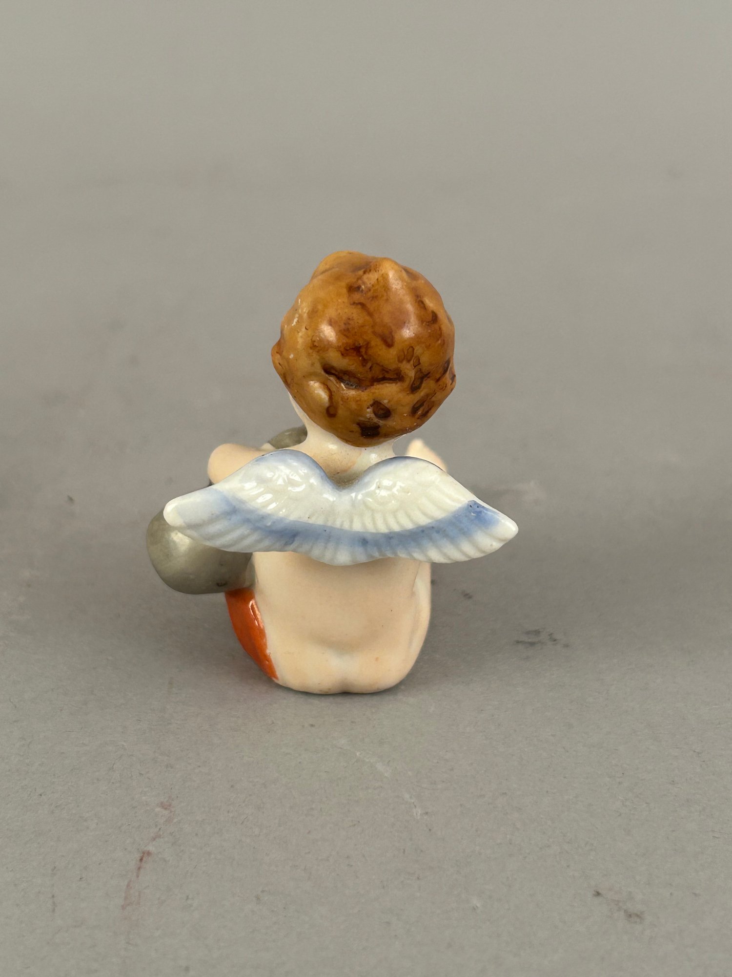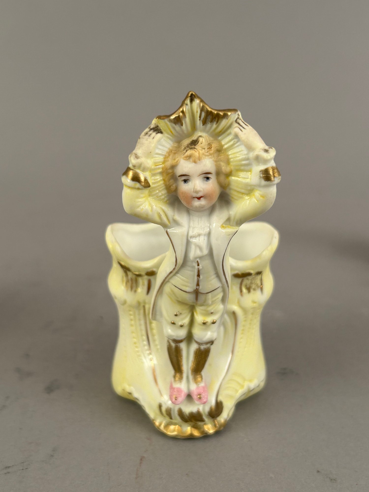 Three small figurines. One marked, one toothpick holder.