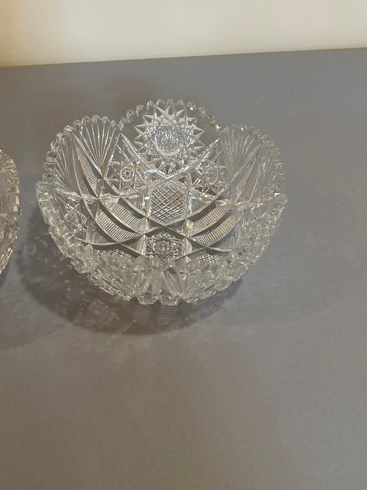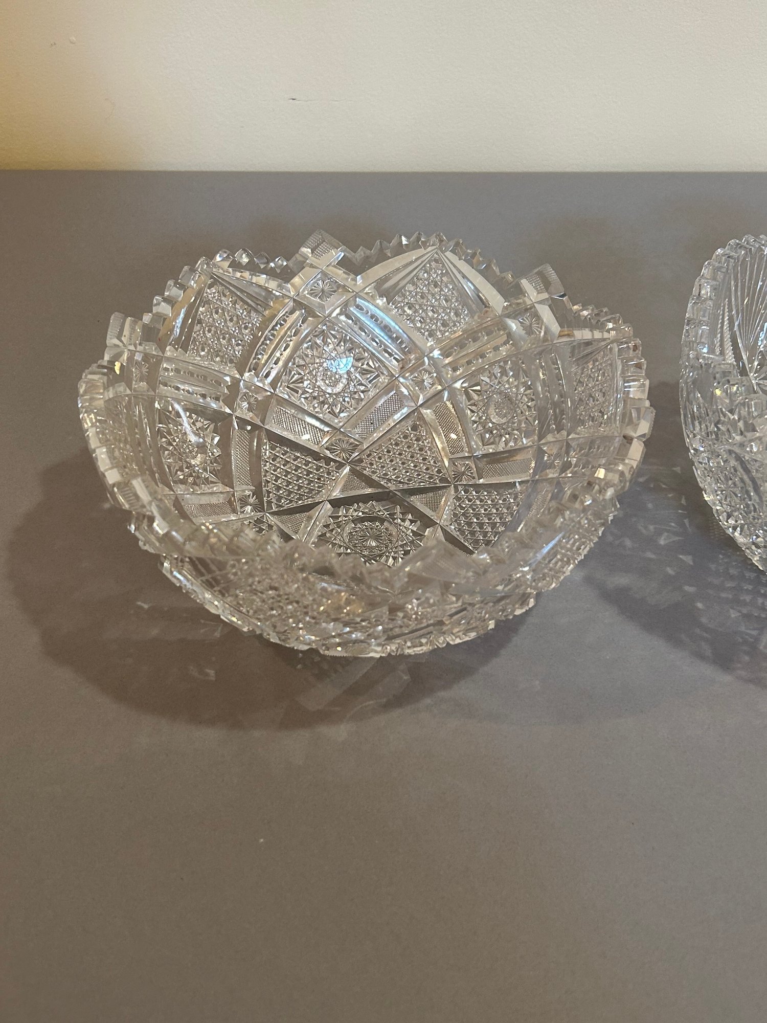 Two cut crystal bowls. Largest one 9 inches diameter.