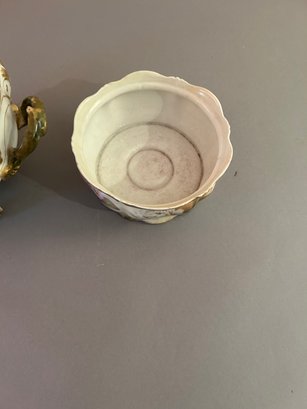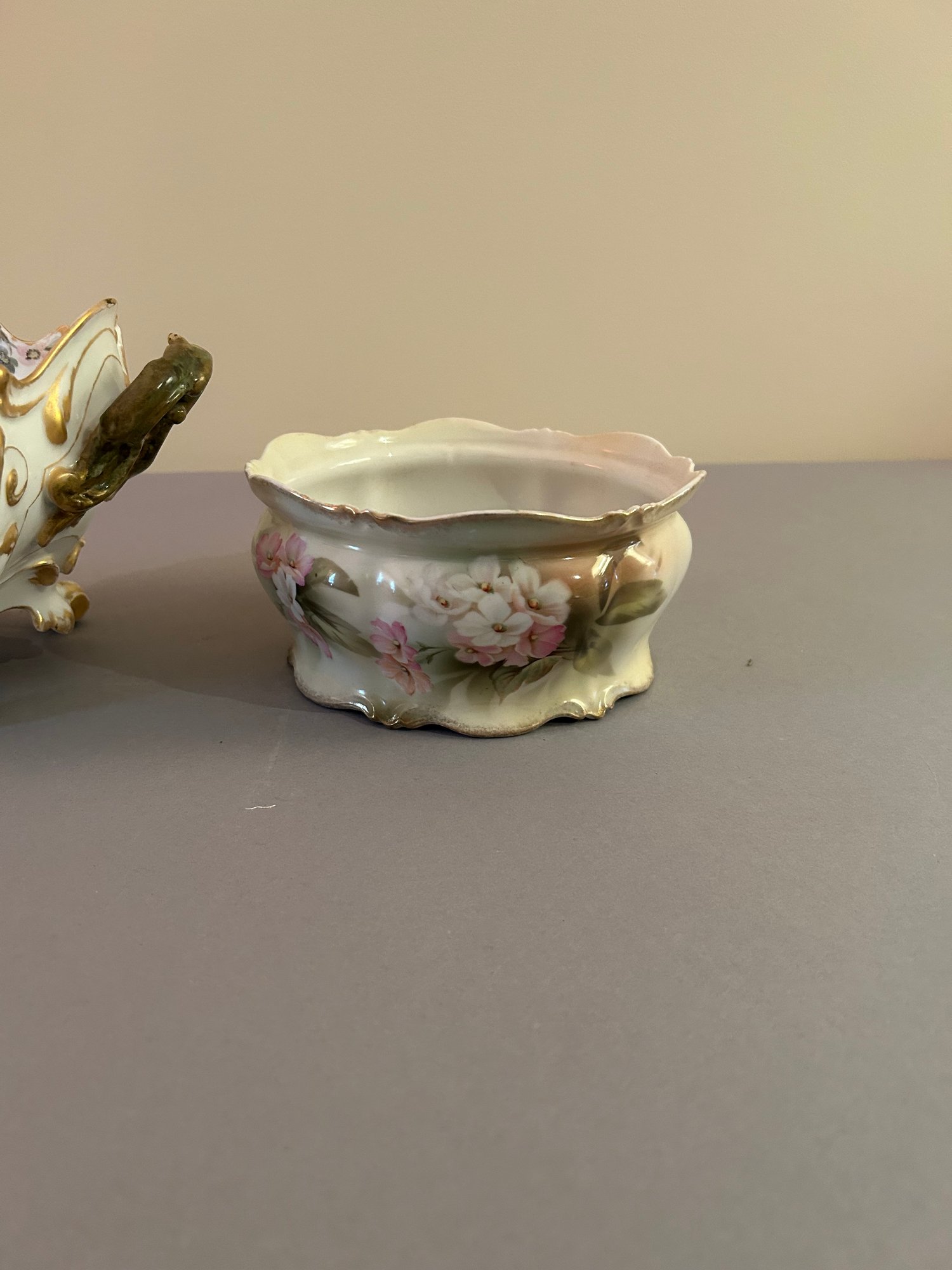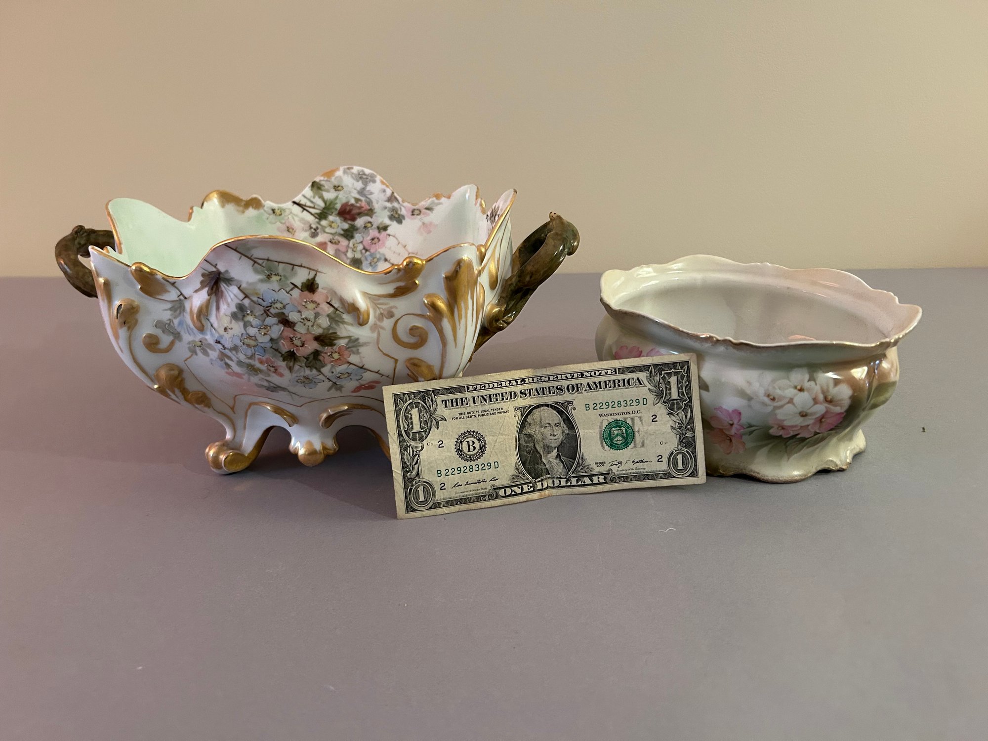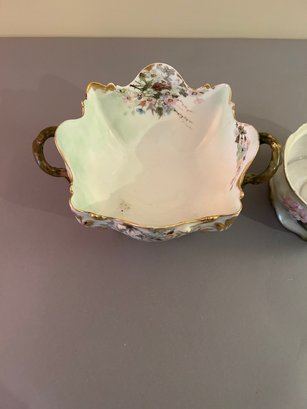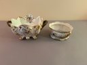 Two floral vessels with gold accents. Height 5.5 width 11 inches