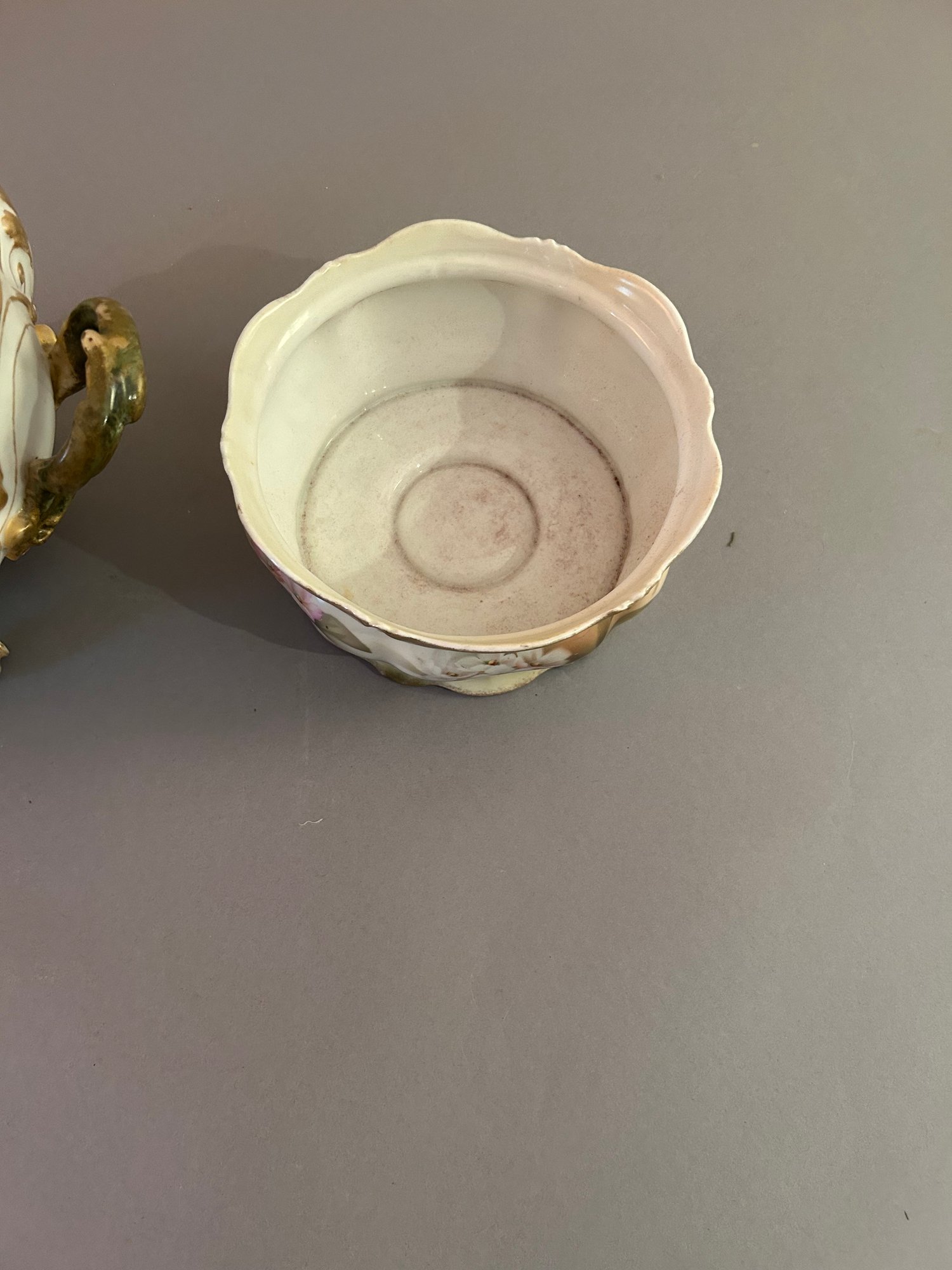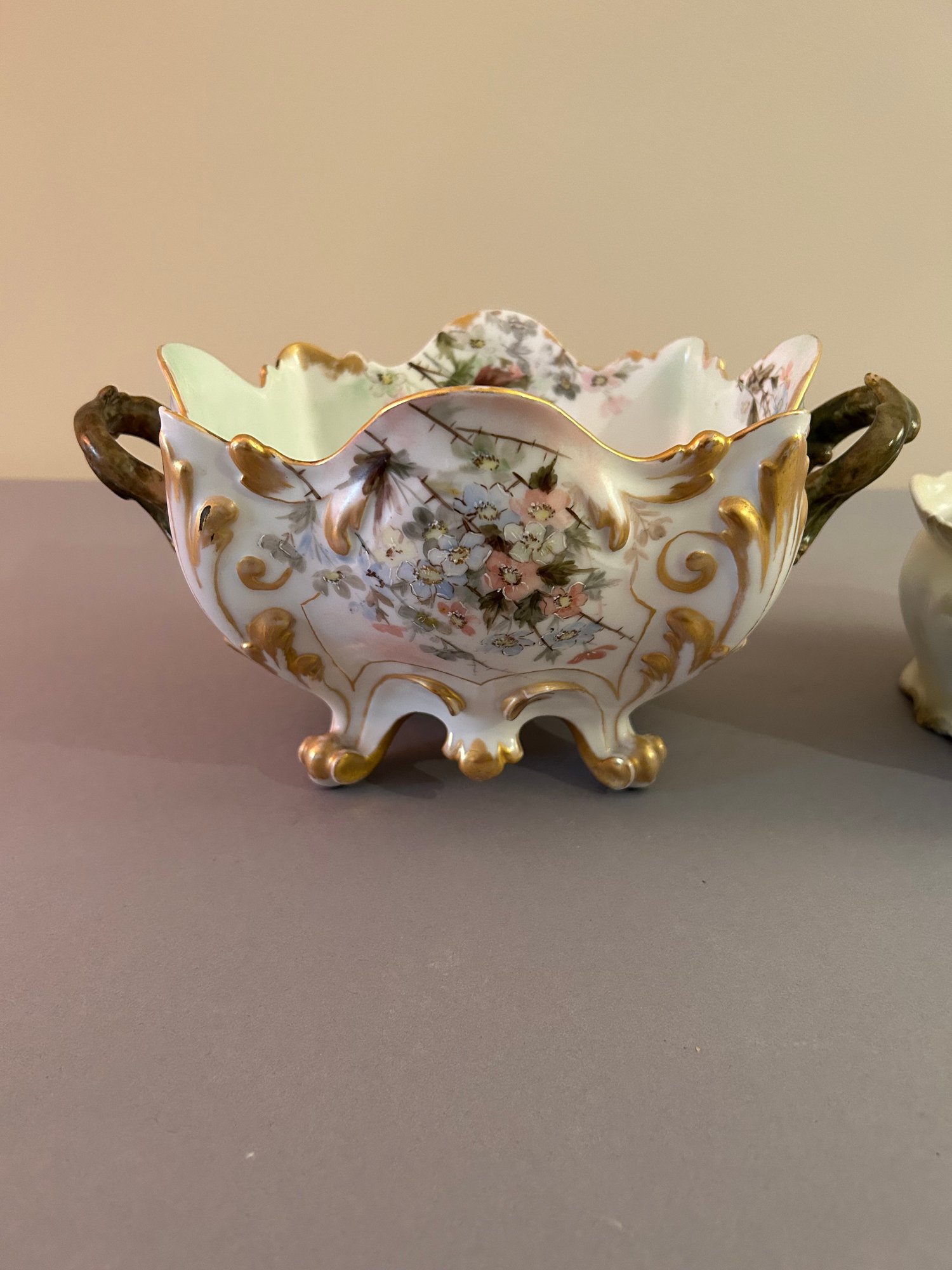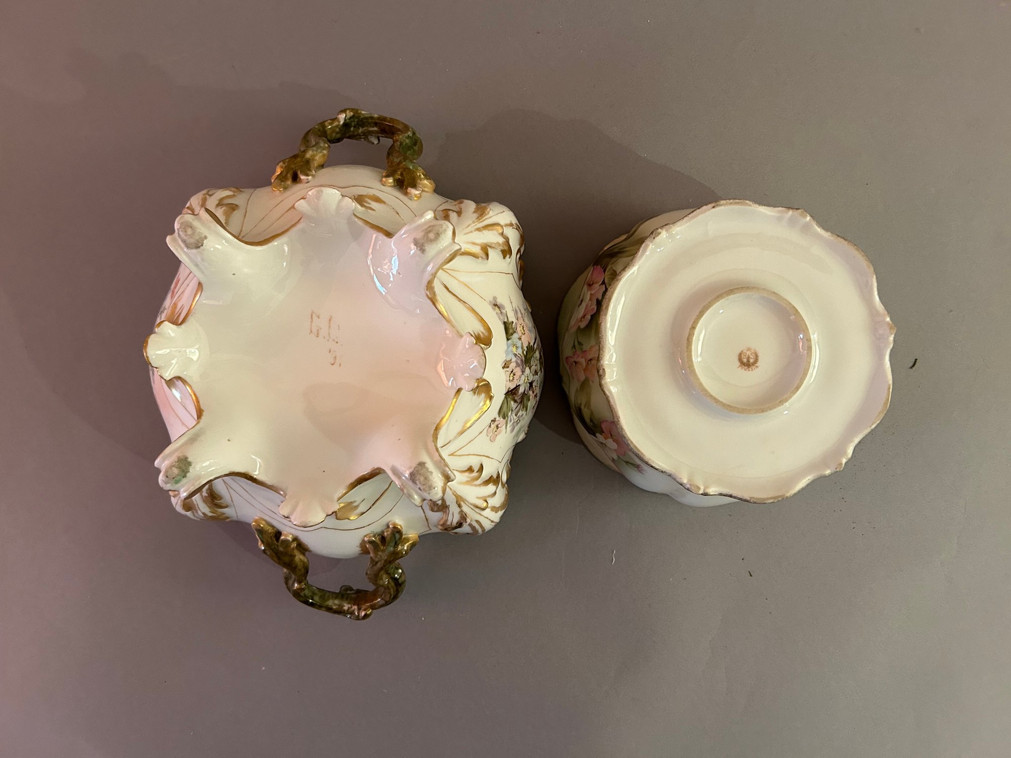 Two floral vessels with gold accents. Height 5.5 width 11 inches