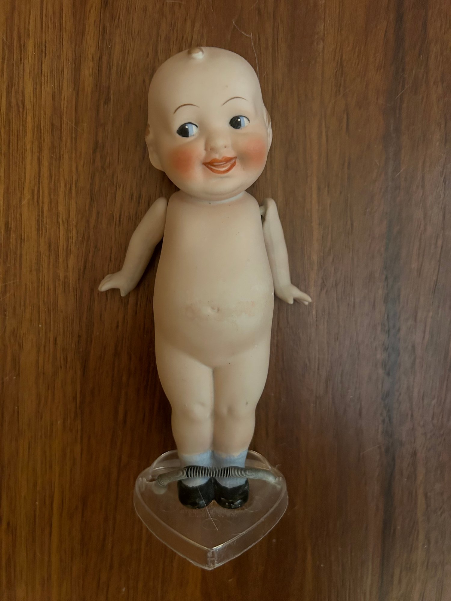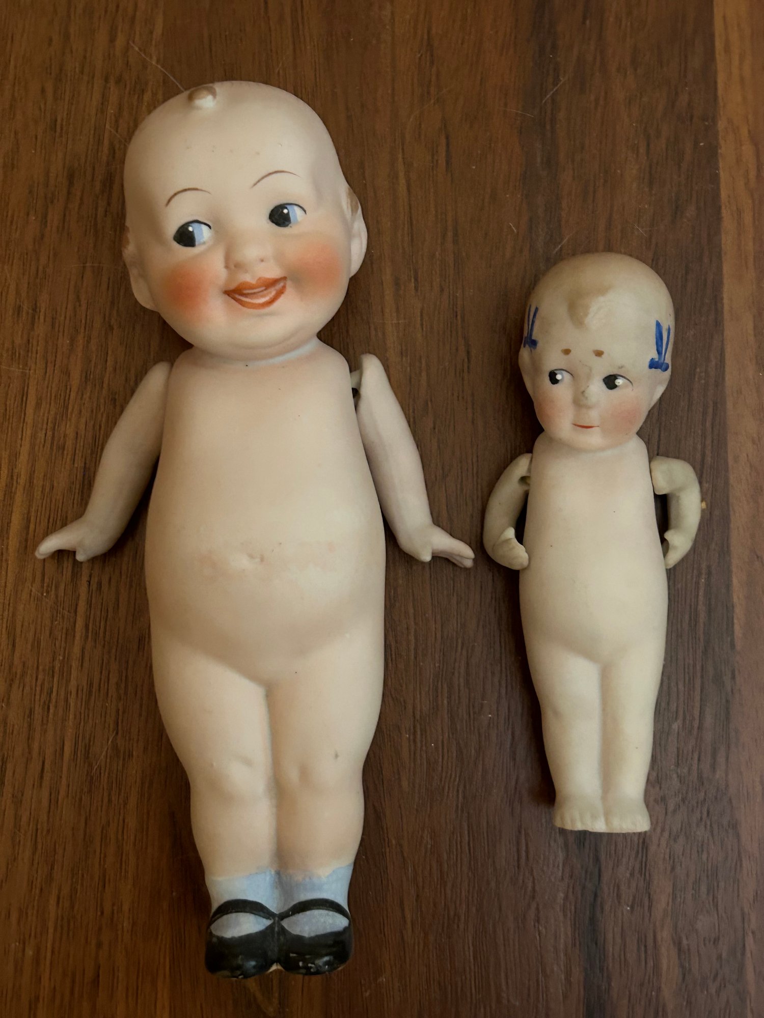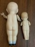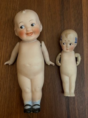 Two kewpie dolls. Smallest one marked Nippon. Tallest one 6 1/2 inches with Knickerbocker stand short one 4 1/2.