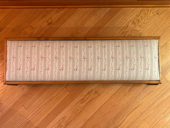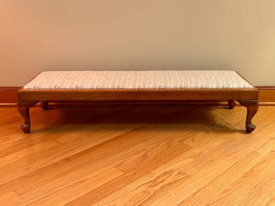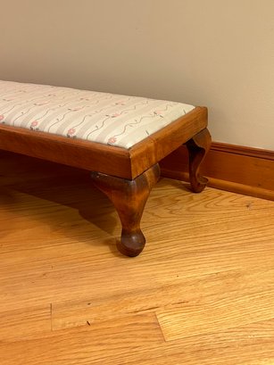 Unusual foot stool bench. Queen Anne style with upholstered insert matching two couches in house. 8.5x39.5x12 inches