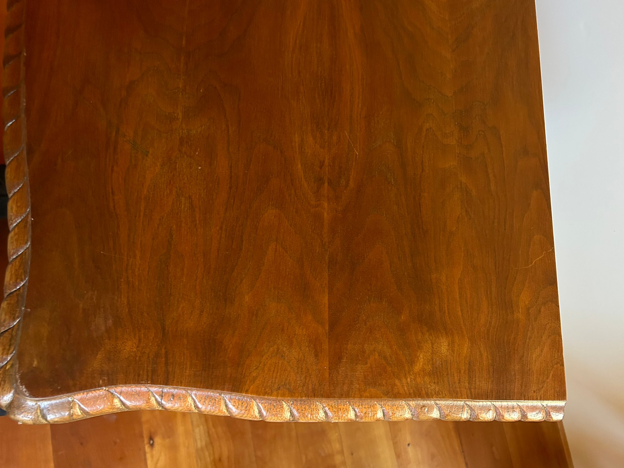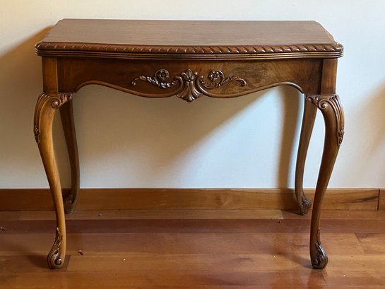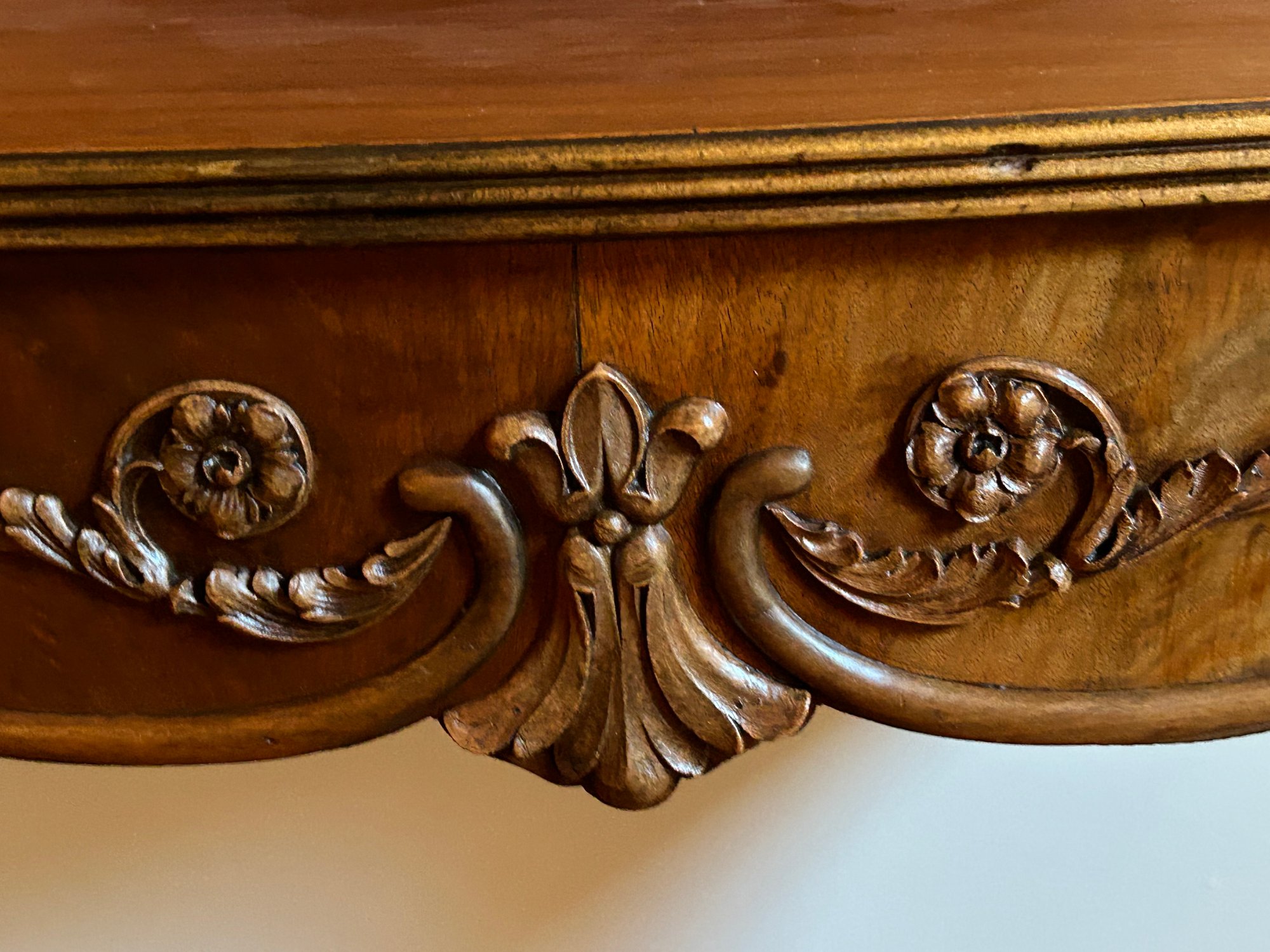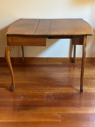 Victorian style game table with carved details.Opens up to a dining table. (leaves missing)