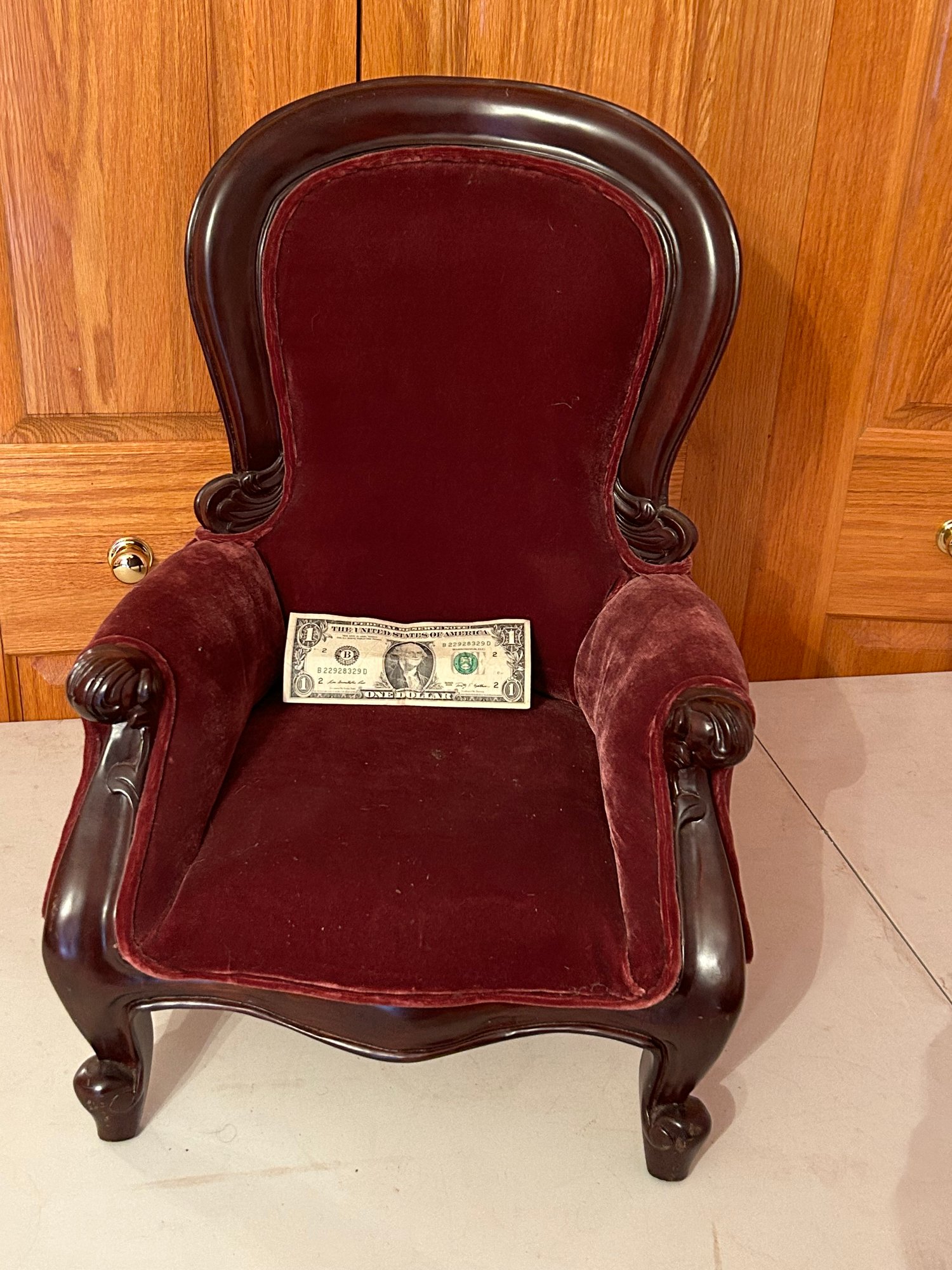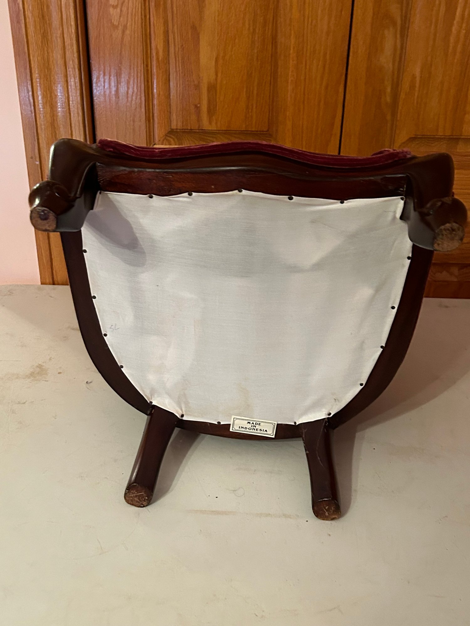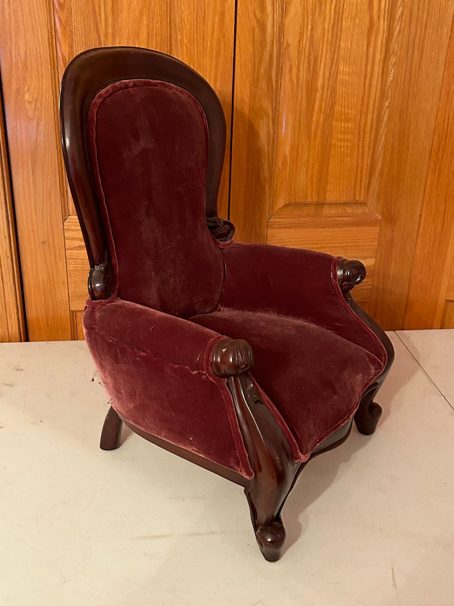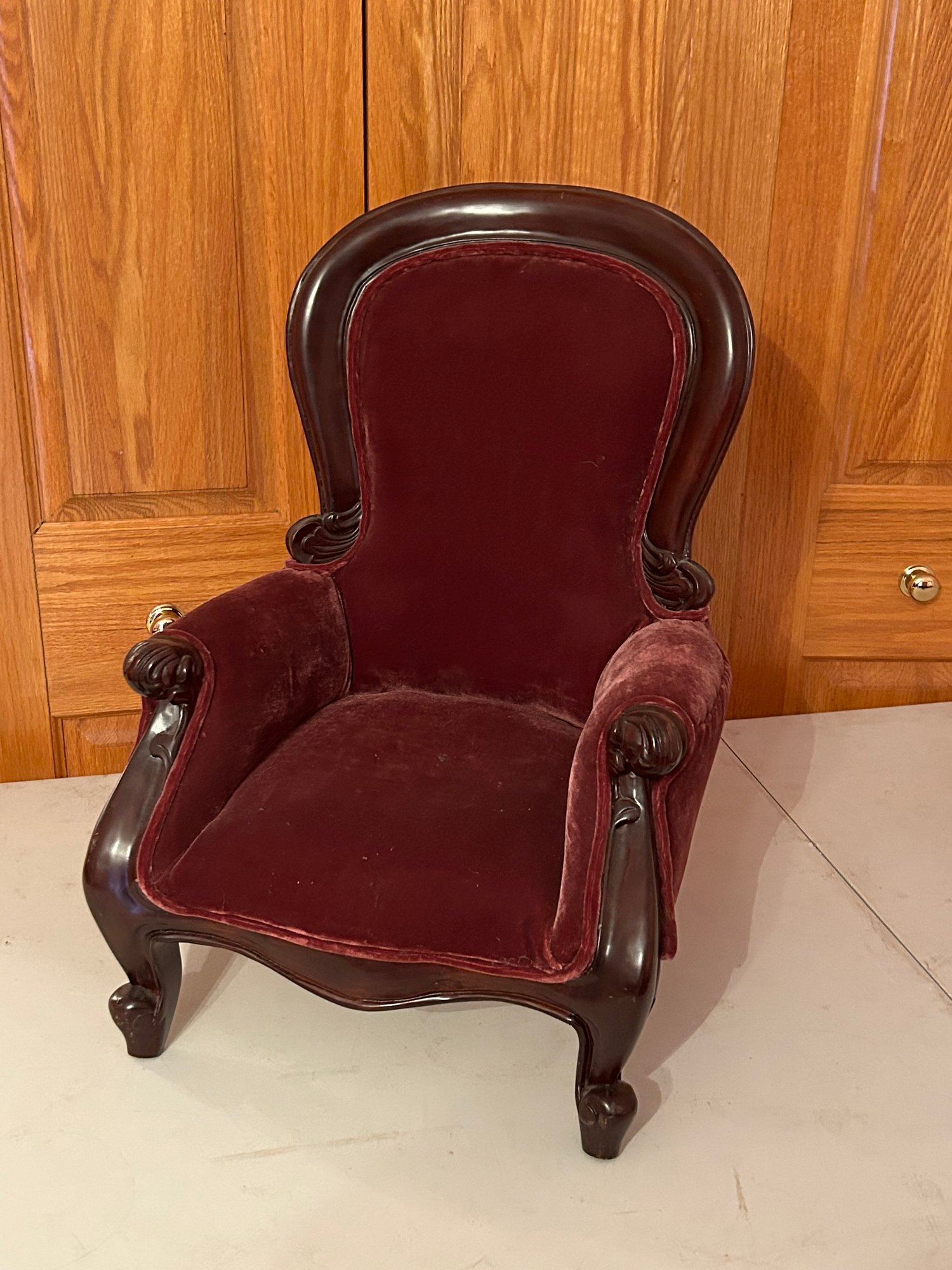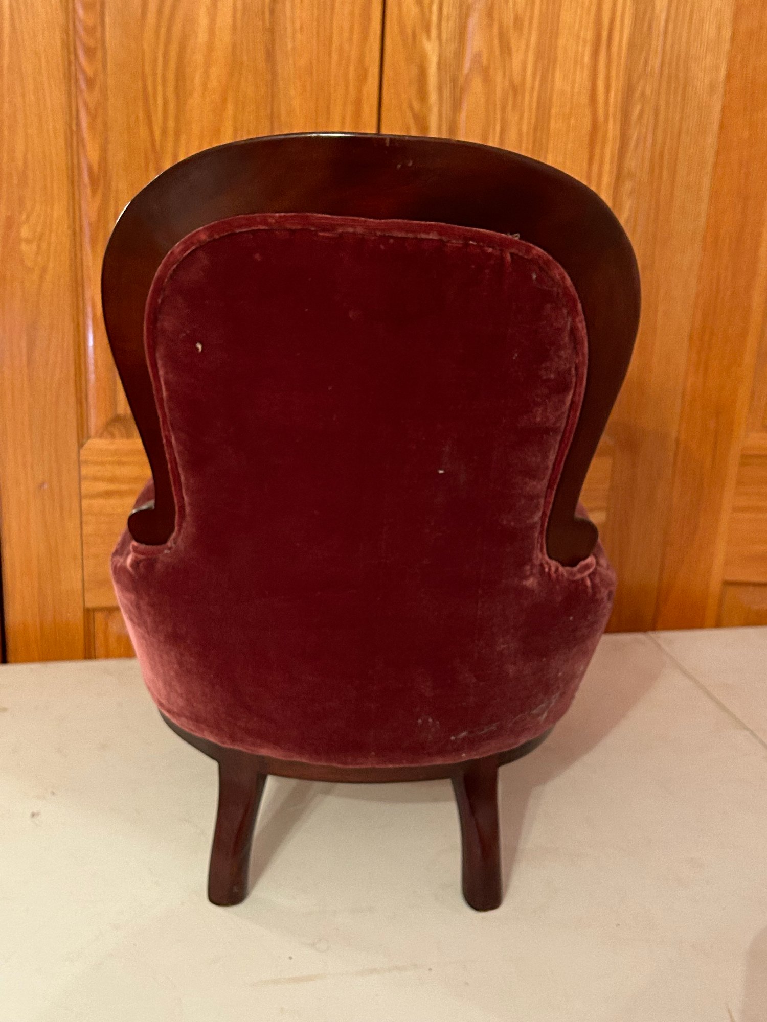 Victorian style upholstered child's chair. 21 inches tall 15 inches wide 12 1/2 inches deep