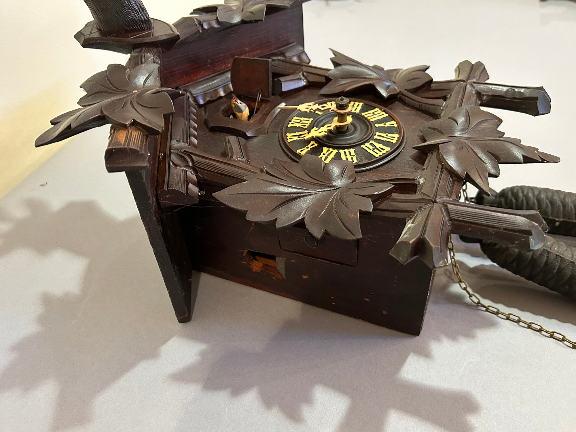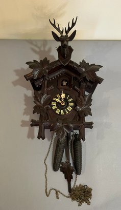 vintage Cuckoo Clock. Black forest w deer head