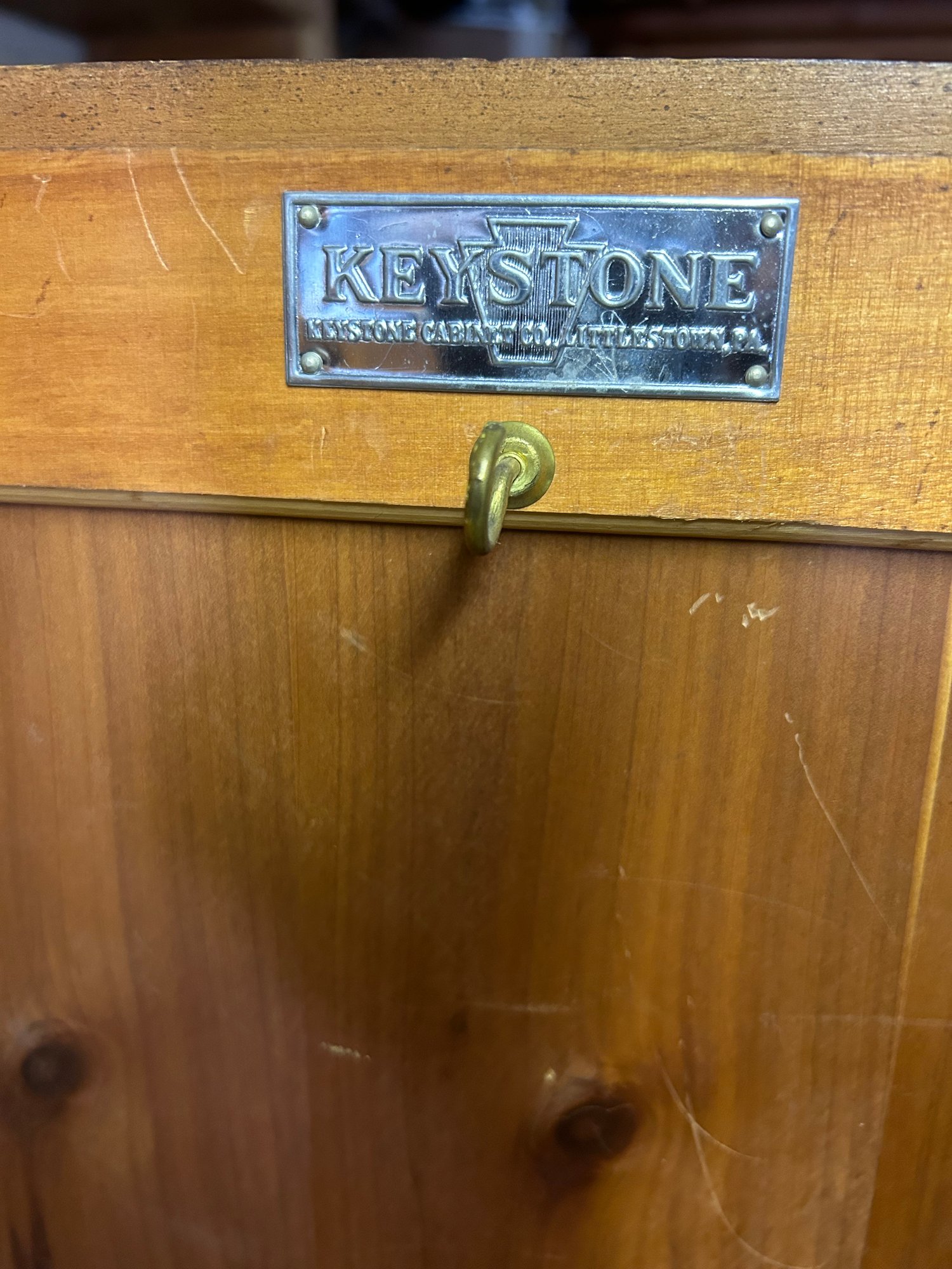 Vintage cedar armoire by keystone cabinet company. Contents not included 39 1/2 x 24 x 66 1/2“ tall.