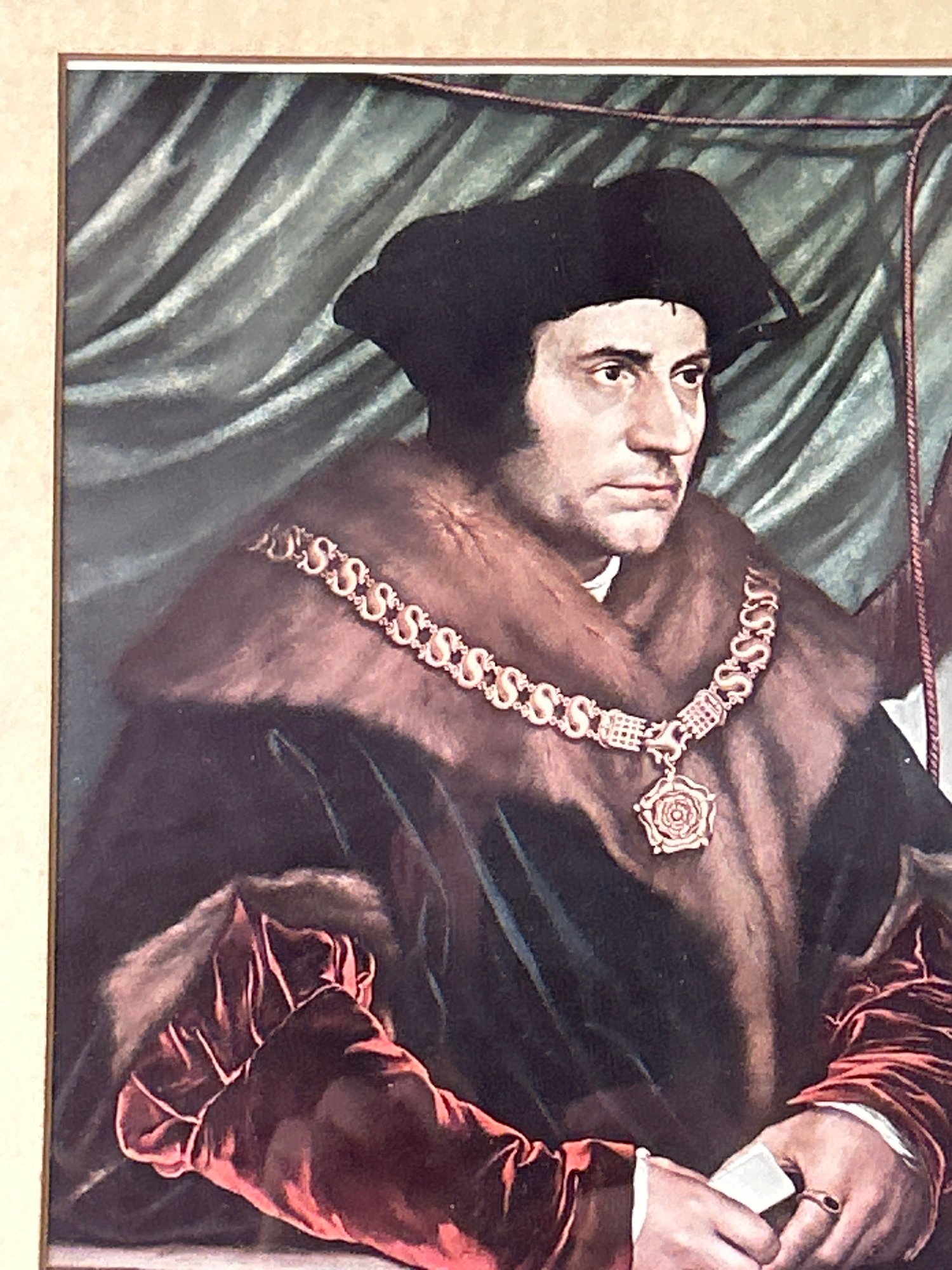 Vintage print of man in formal attire. Hans Holbein the Younger depicting Sir Thomas More. 16“ x 12 1/2“