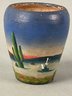 Vintage Southwestern Handpainted Stoneware Vase with cactus and desert scene. 5” tall