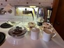 10 Piece Kitchen Lot To Include GE Percolator, Candy Dish, Two China Tea Cups With Saucers - K28
