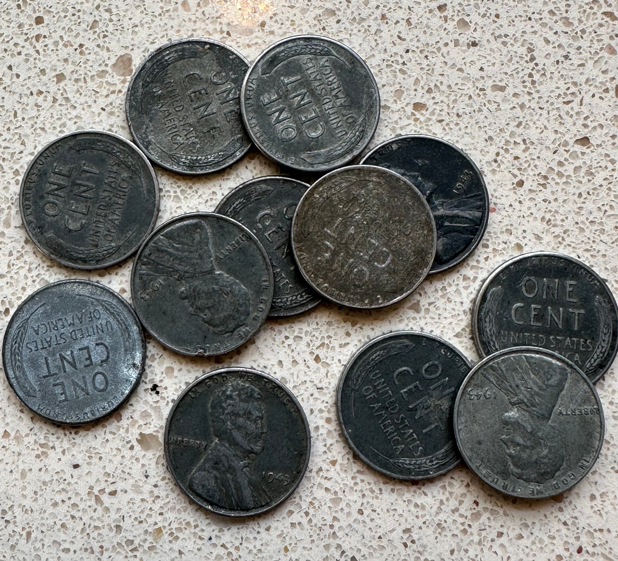 12 (Twelve) 1943 Zinc Wheat One Cent Coins - 47