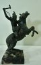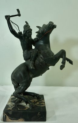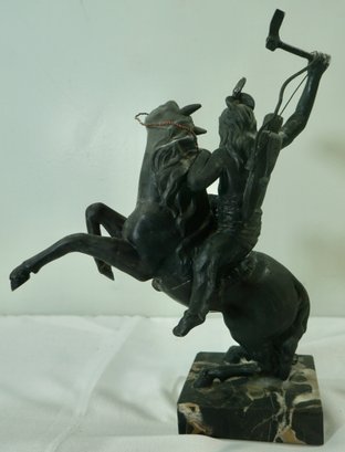 14- Native American Statue- White Metal On Marble- 11.5 T X 9