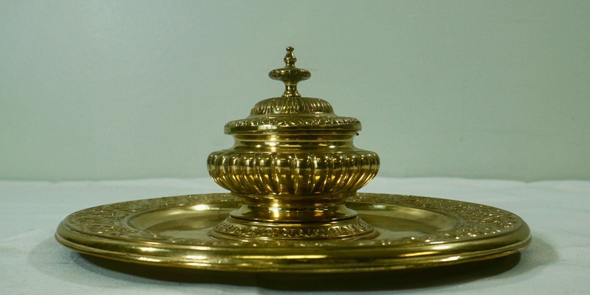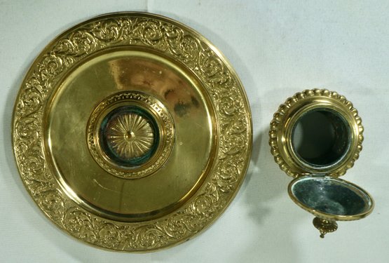 16- 18th Or 19th Century Brass Inkwell - 8.875 " W- No Insert